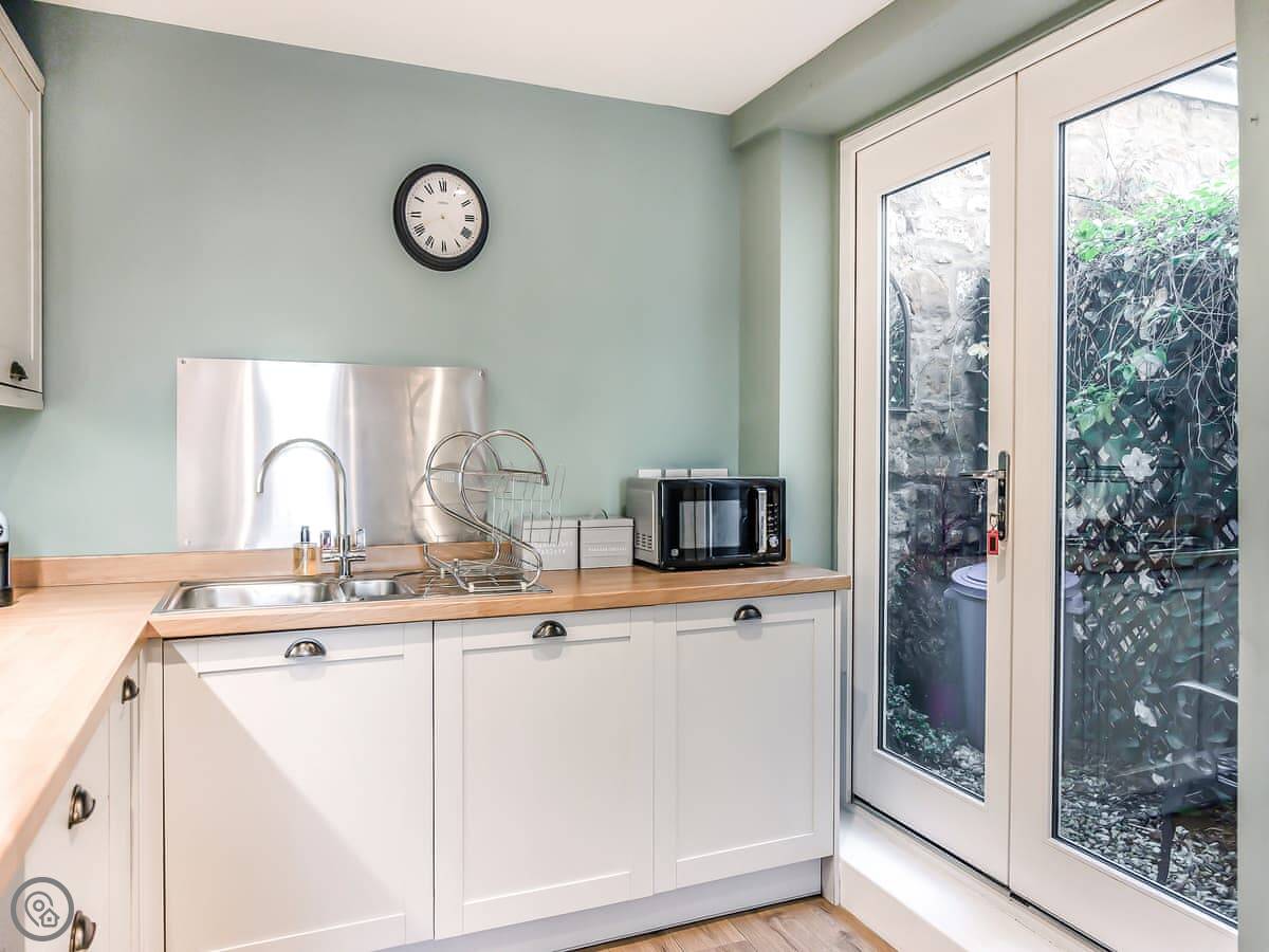 Facilities: There’s a washing machine, WiFi, and a TV. Bedding and towels are included. There’s a cot and a highchair if you need them. No pets.