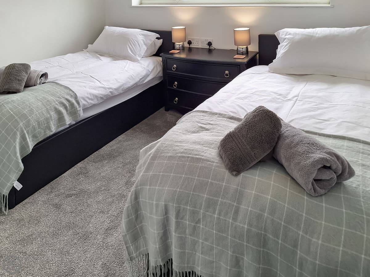 It sleeps four. Two bedrooms, one shower room upstairs. It's got a 4 Star rating. Everything's new, clean, and works. The garden is enclosed, which is good if you've got a dog. Speaking of which, we allow one well-behaved small dog.