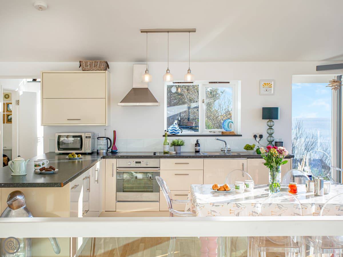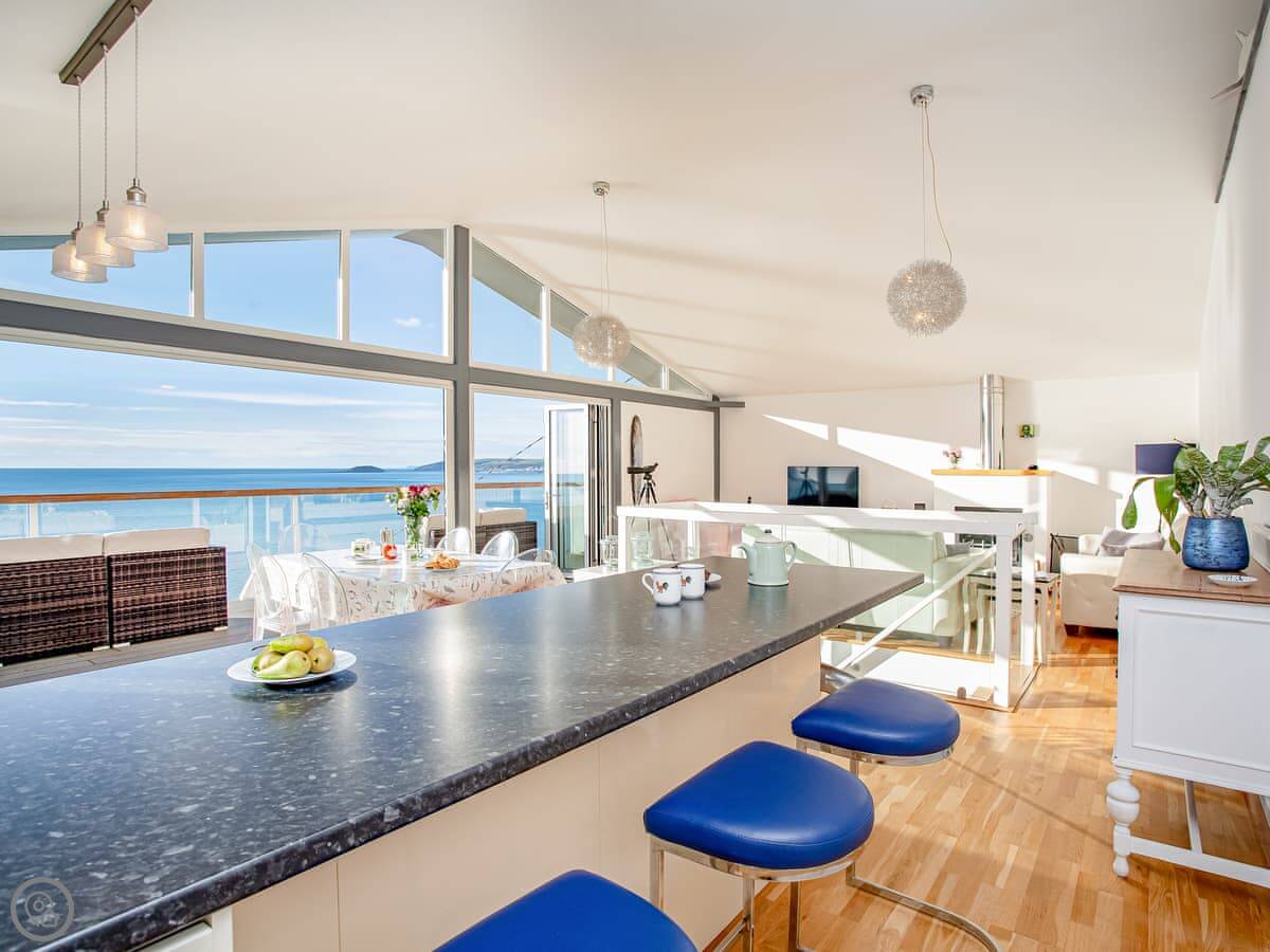 The Lookout is in Downderry, near Seaton. It's a detached house on the side of the hill. The view is straight out to sea. Honestly, that's what you're paying for.