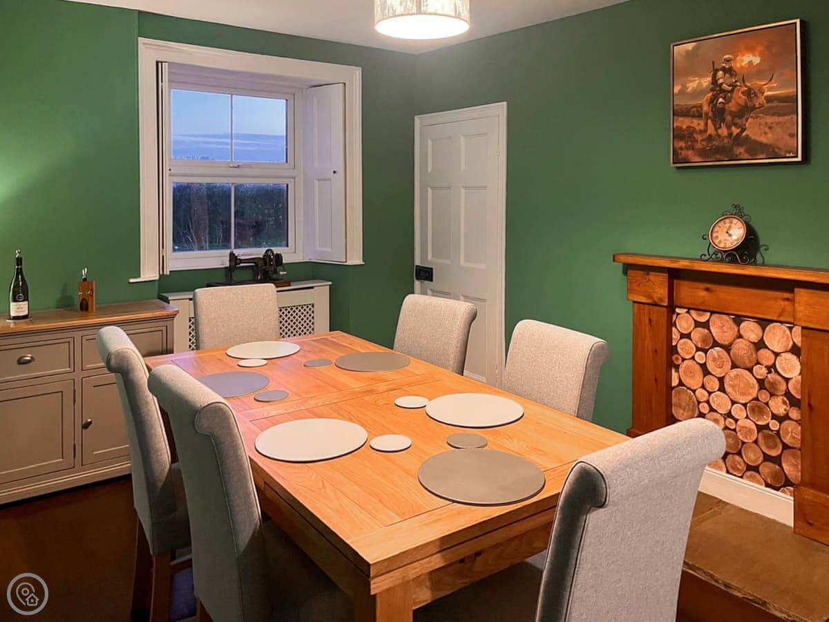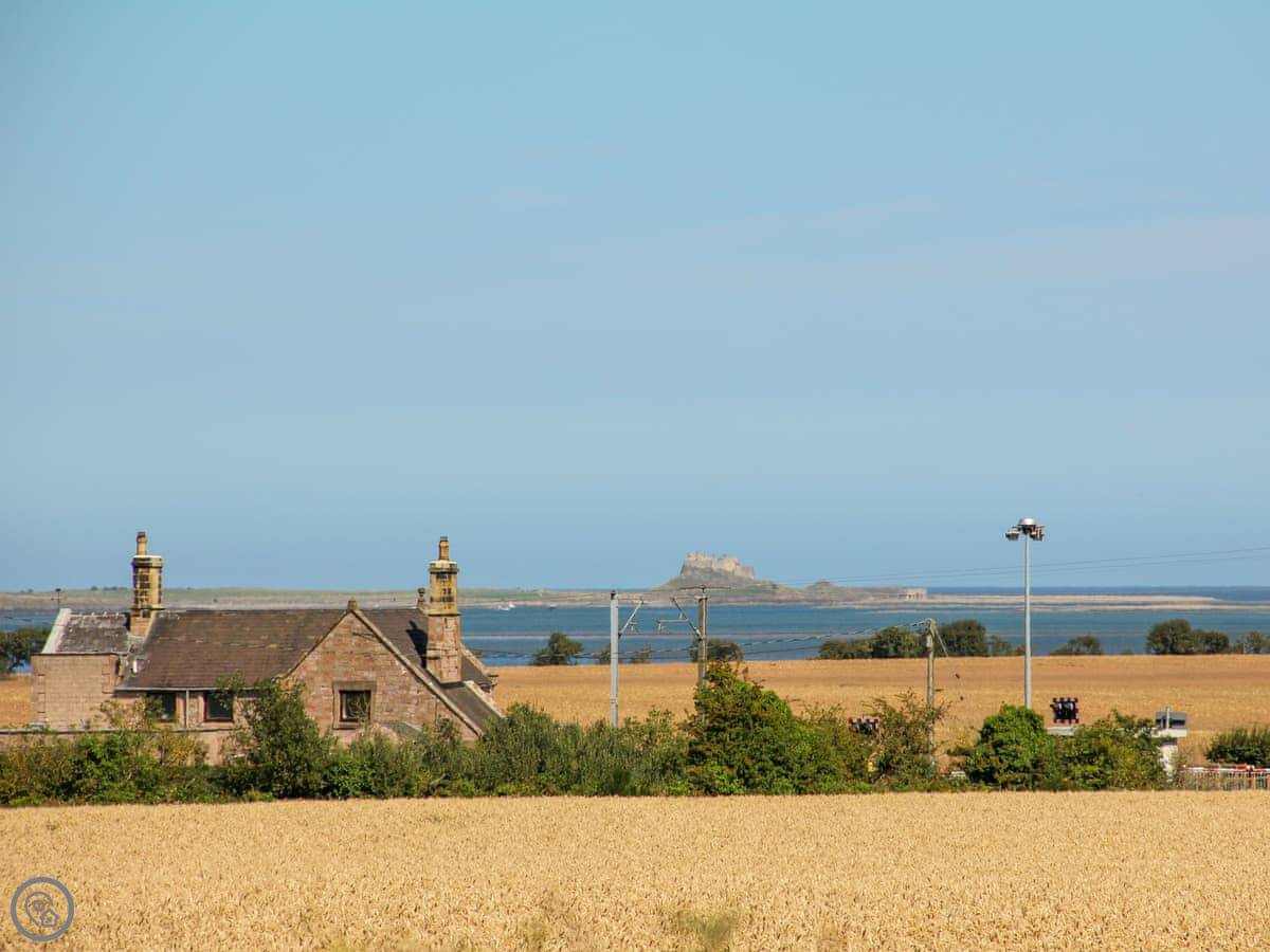 The view from the front is across farmland towards the coast. It's not right on the beach, but you can see the sea from upstairs on a clear day. Bamburgh Castle is about four miles away, so less than ten minutes in the car. The beach there is massive. Holy Island is a bit further, maybe twenty minutes, but you have to check the tide times.