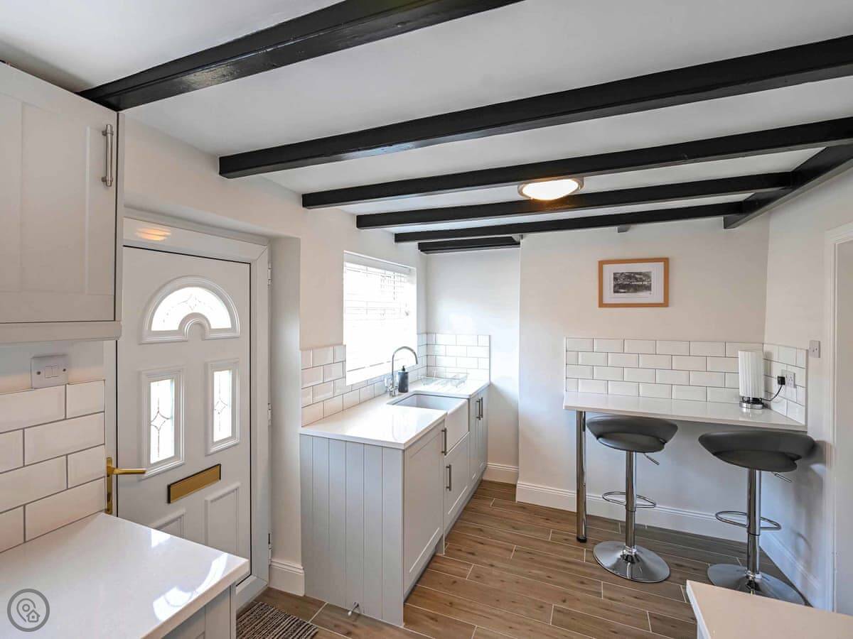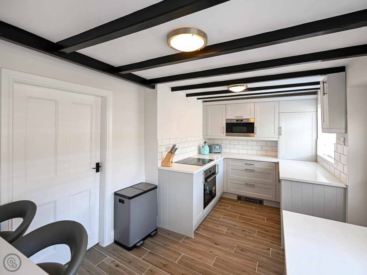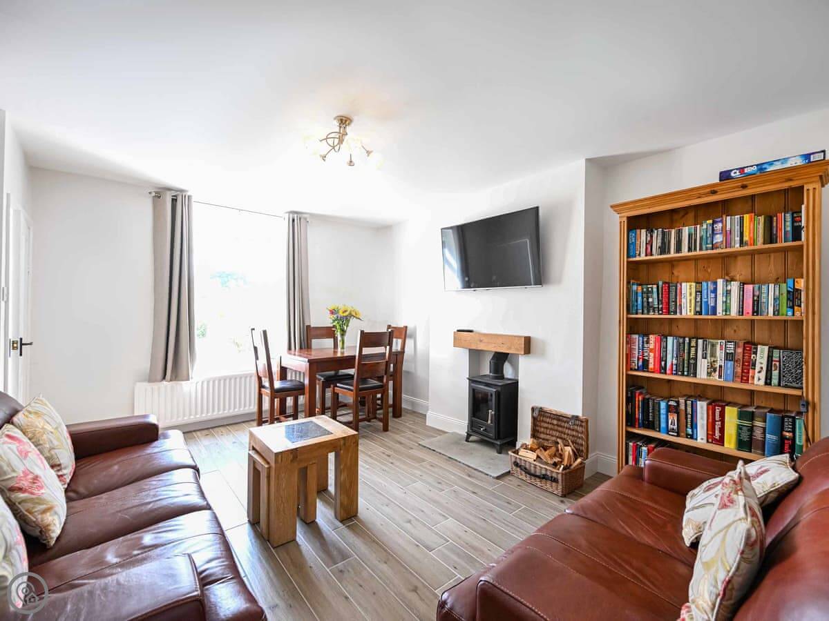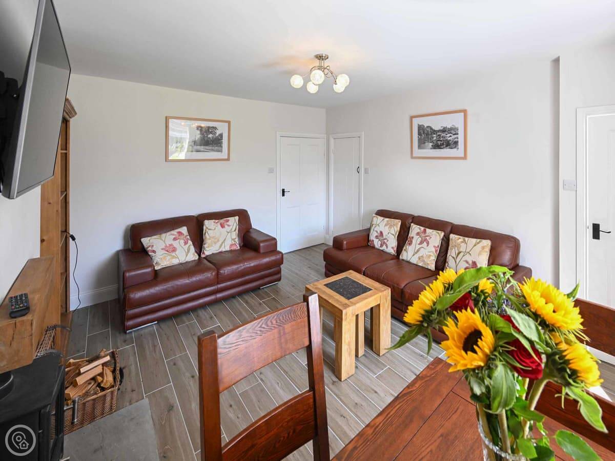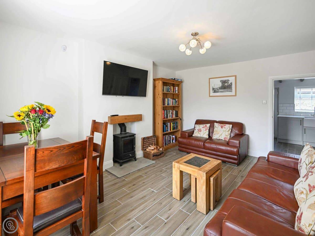 The living room and dining area are open plan. The kitchen is separate, through a doorway. It has everything you need. There's a wood burning stove in the living room. We leave some logs to get you started.