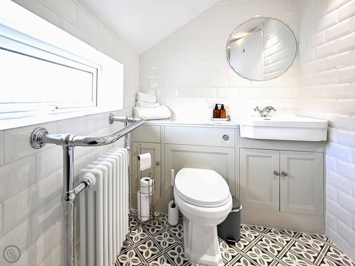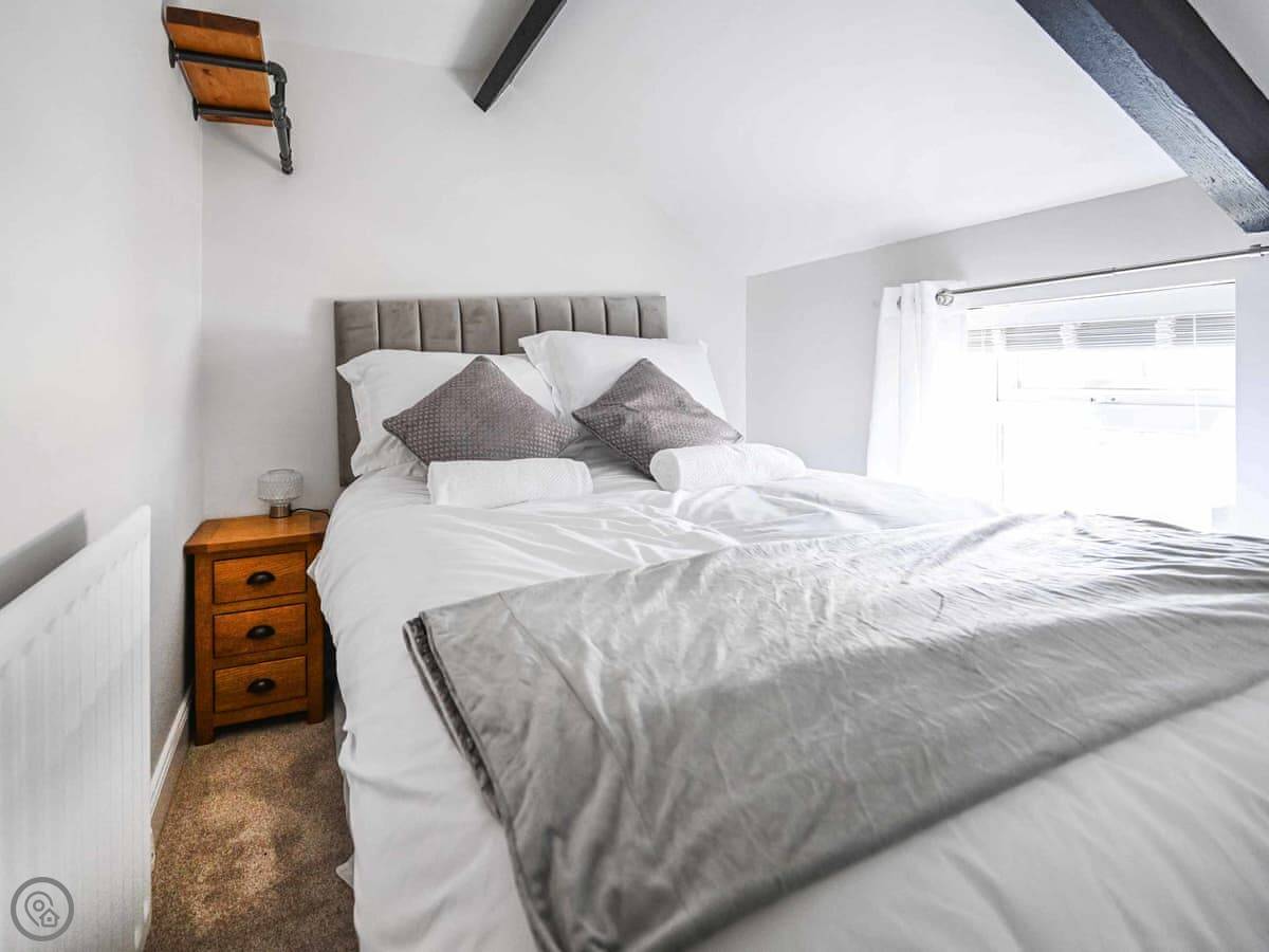 It sleeps four, in two bedrooms. There's one bathroom. It's got a 4 Star rating. It's comfortable and warm. The stairs are typical for these houses: a bit steep and narrow.
