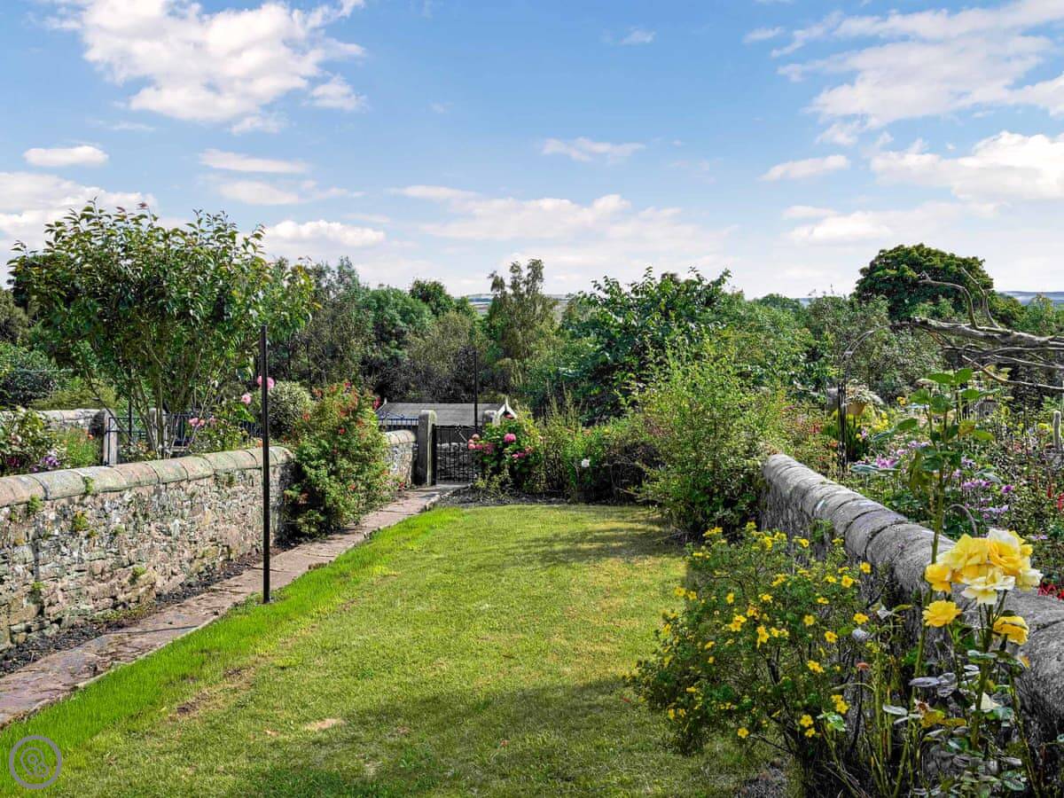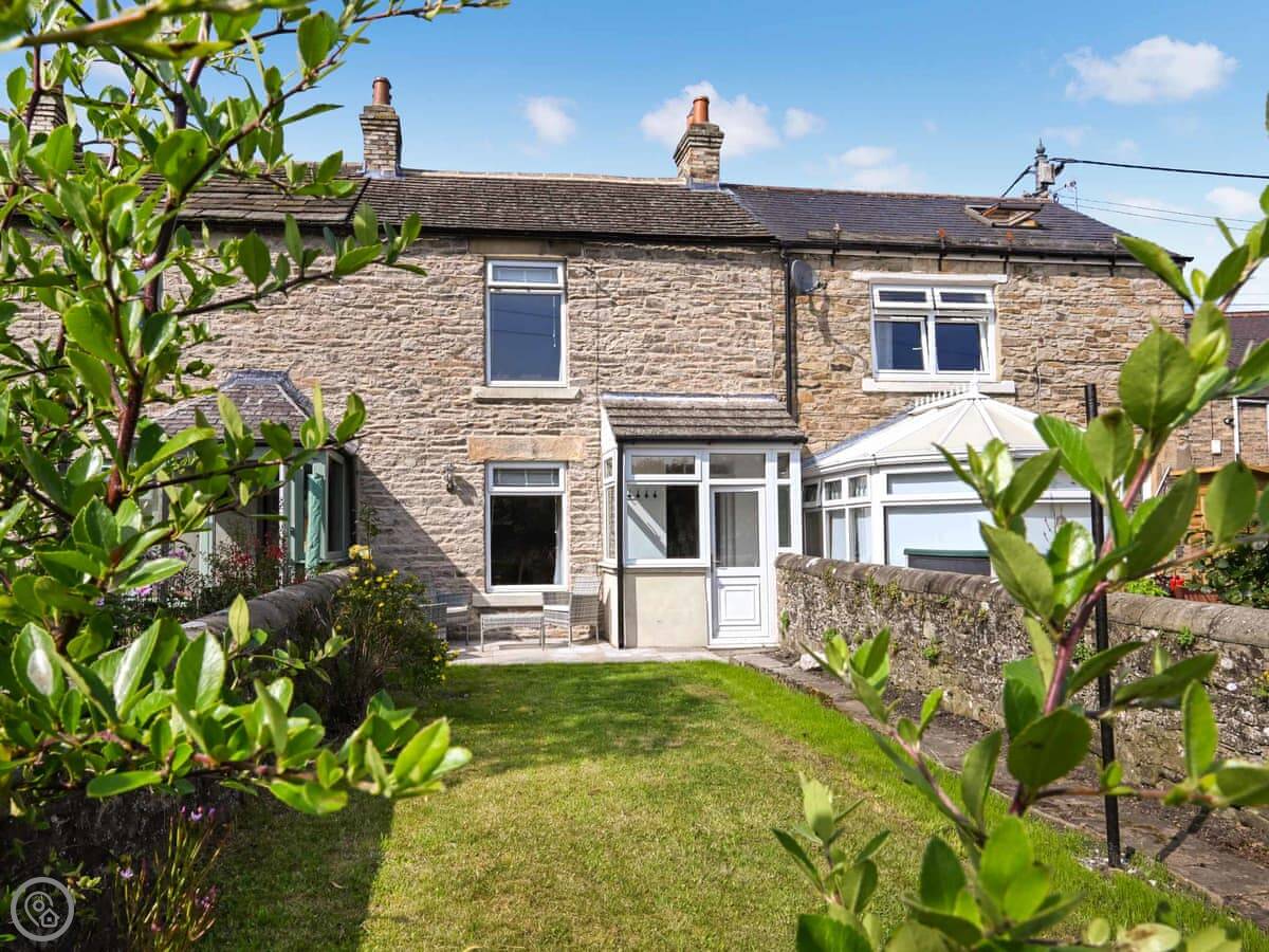 Outside, there's an enclosed garden at the back with a patio. It's a proper sun trap in the afternoon. You can see right down the valley.