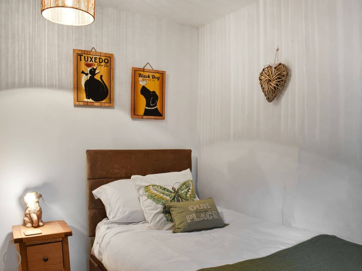 There's a wood burner in the living room. We leave some logs to get you started. The kitchen has a dishwasher, and the garden out the back is fully enclosed. It's not huge, but it's private. One well-behaved dog is allowed.