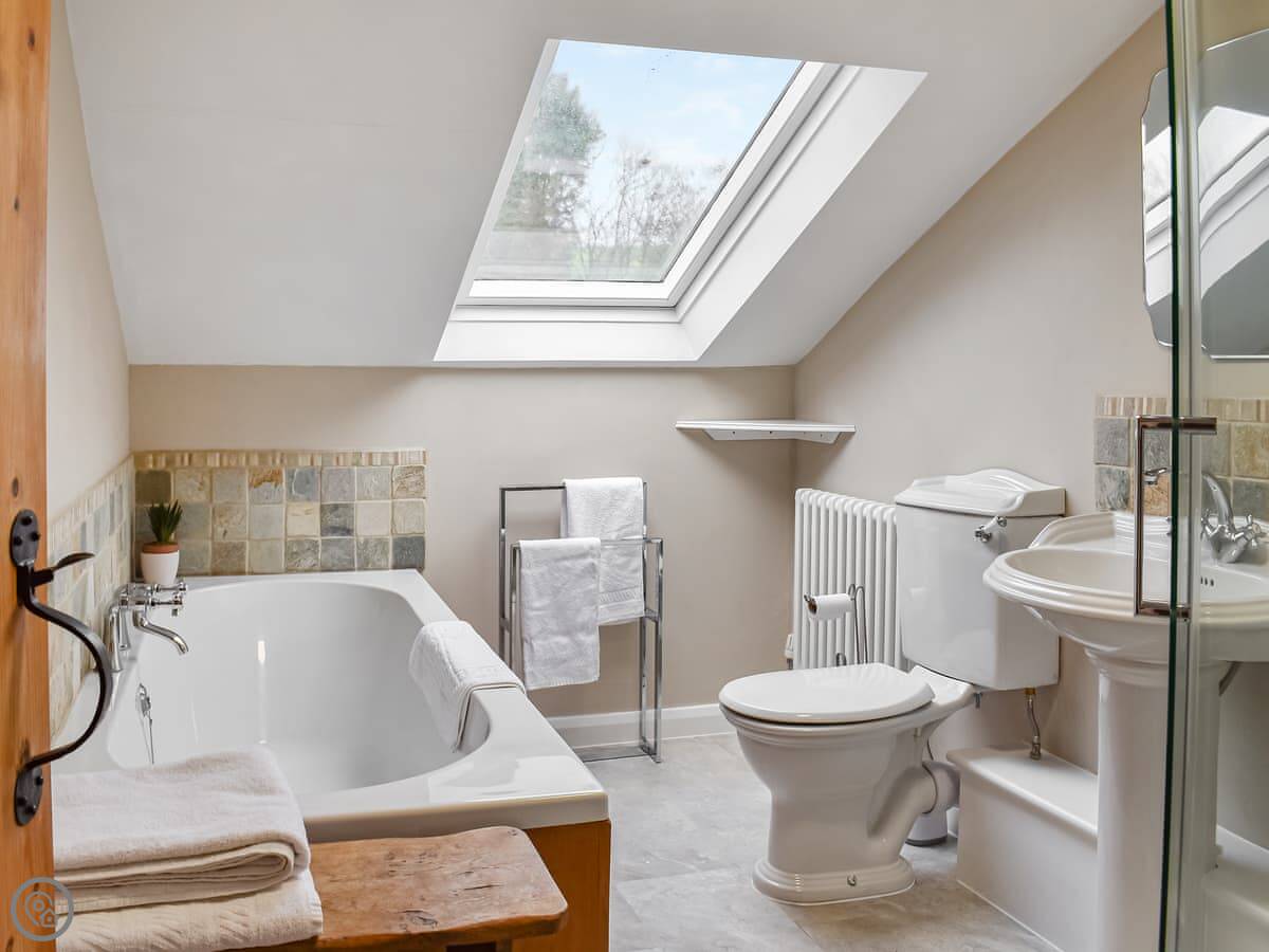 It's Grade II listed, so the walls are nice and thick. The stairs are steep, like most old cottages. There's one bathroom upstairs with a bath and a separate shower cubicle.