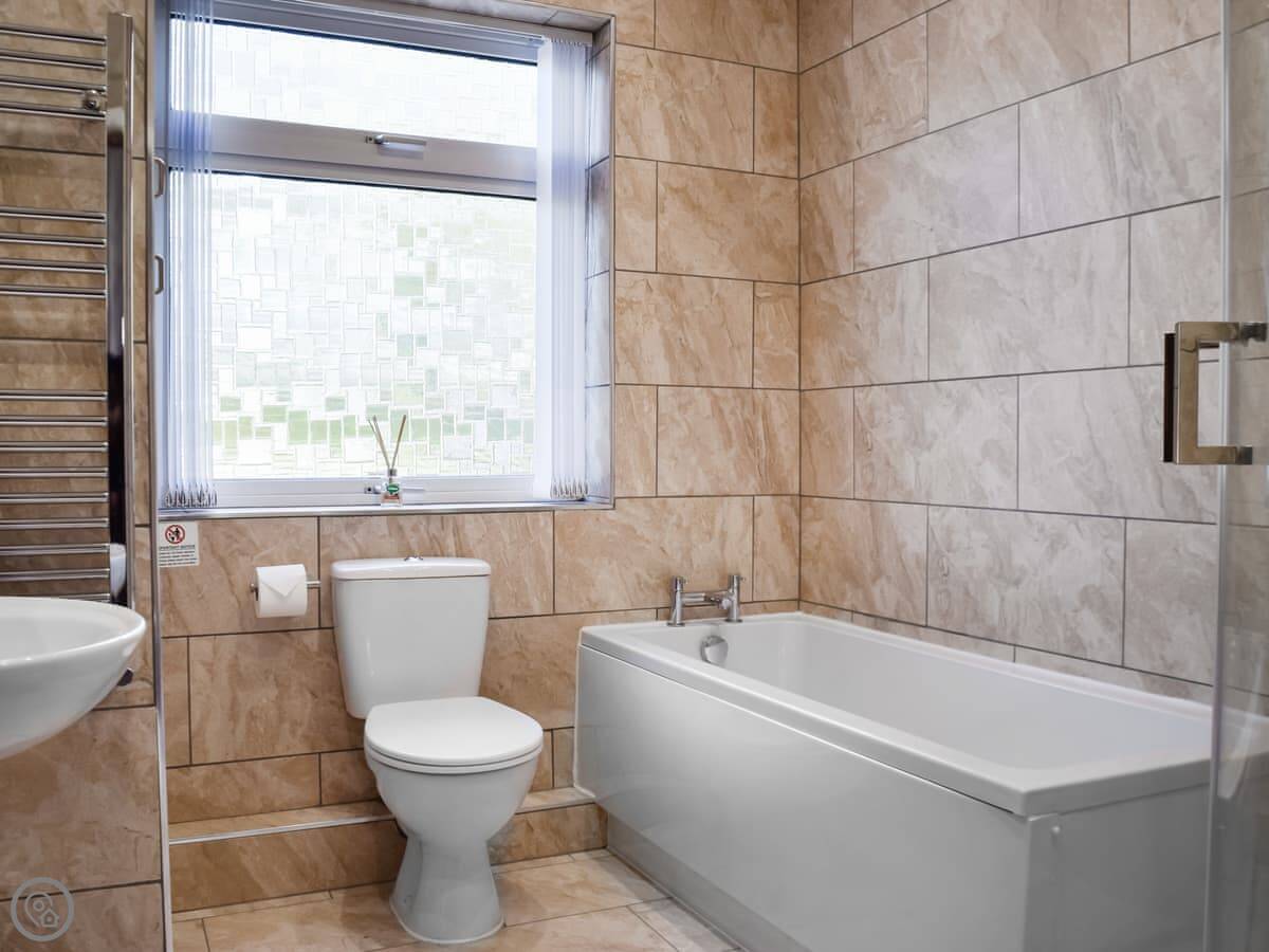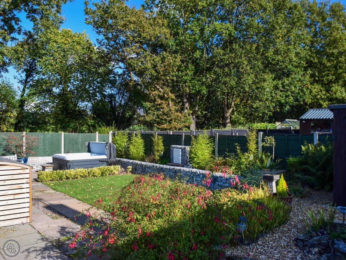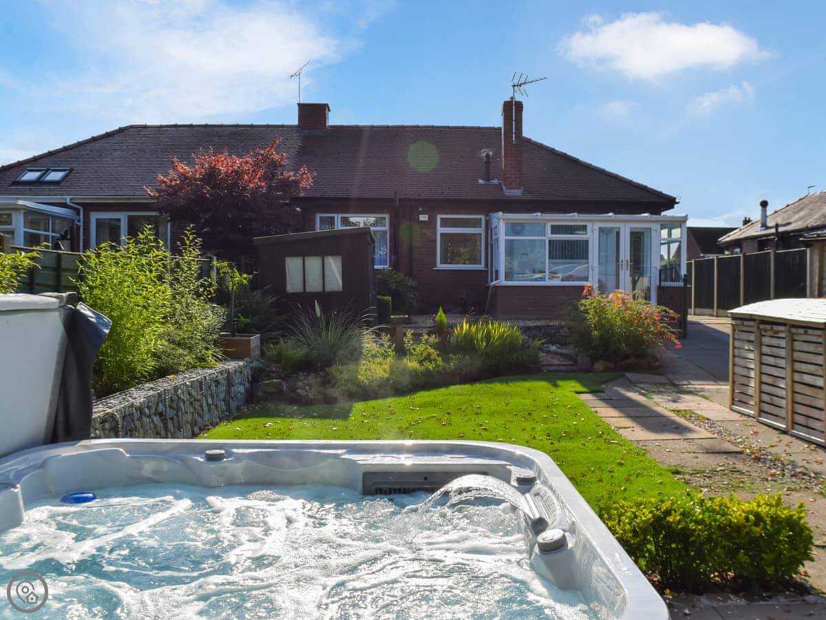 The main thing is the garden. It's enclosed at the back and has a hot tub in it. We provide towels for the hot tub. Inside, it's just what you need. One bathroom with a shower, a washing machine, wifi, TV. All the bedding and towels are included. There's parking on the drive.