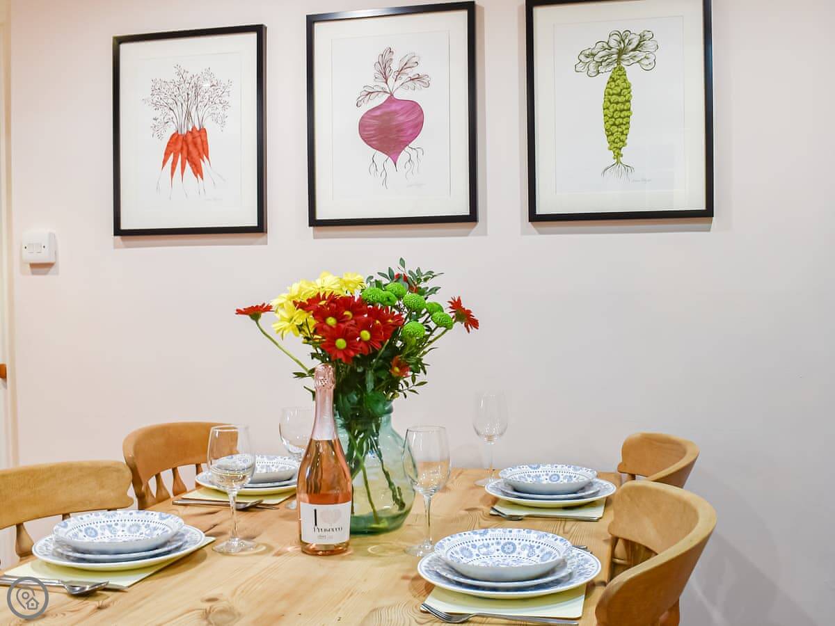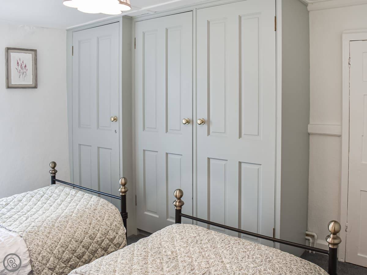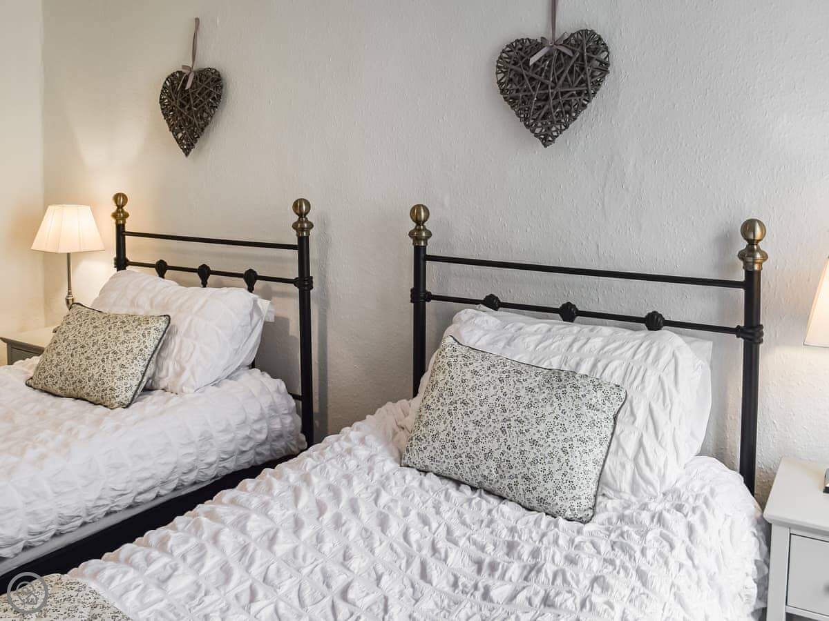 It sleeps four. Two bedrooms upstairs, one double and one twin. The bathroom is downstairs. There's a woodburning stove in the lounge and a garden out the back.