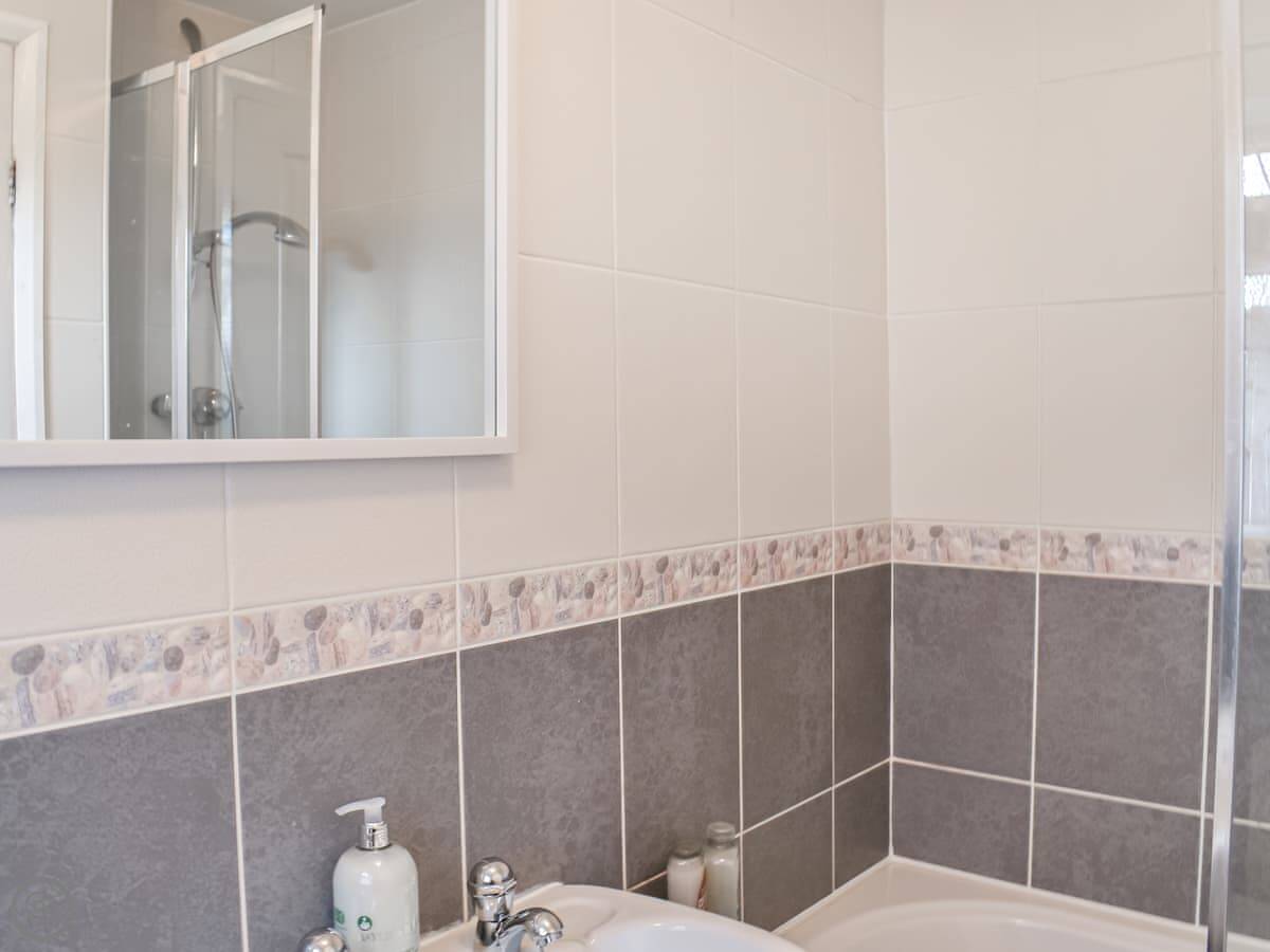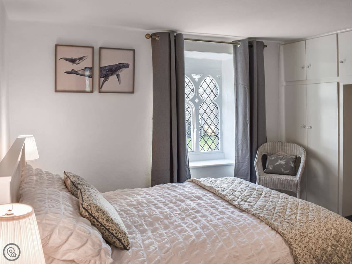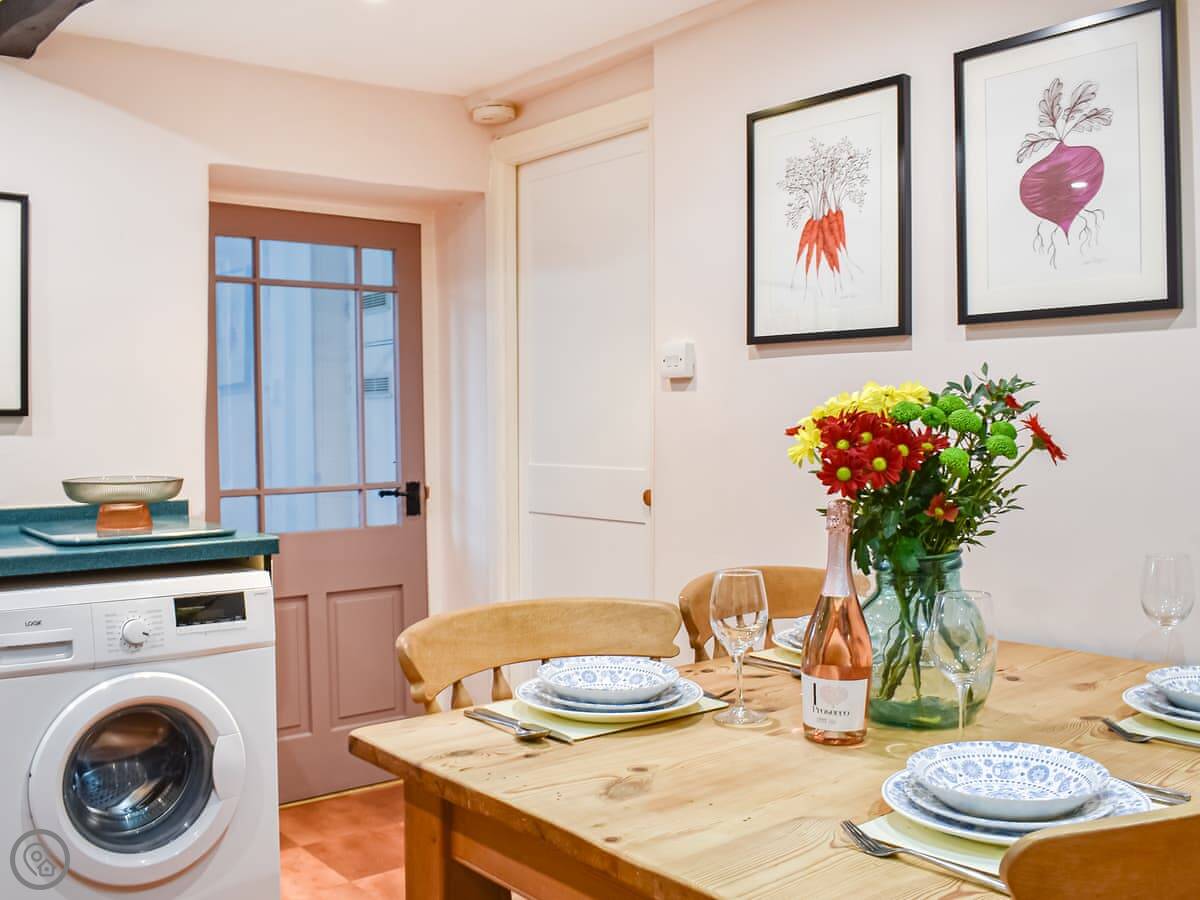 It sleeps four. Two bedrooms upstairs, one double and one twin. The bathroom is downstairs. There's a woodburning stove in the lounge and a garden out the back.