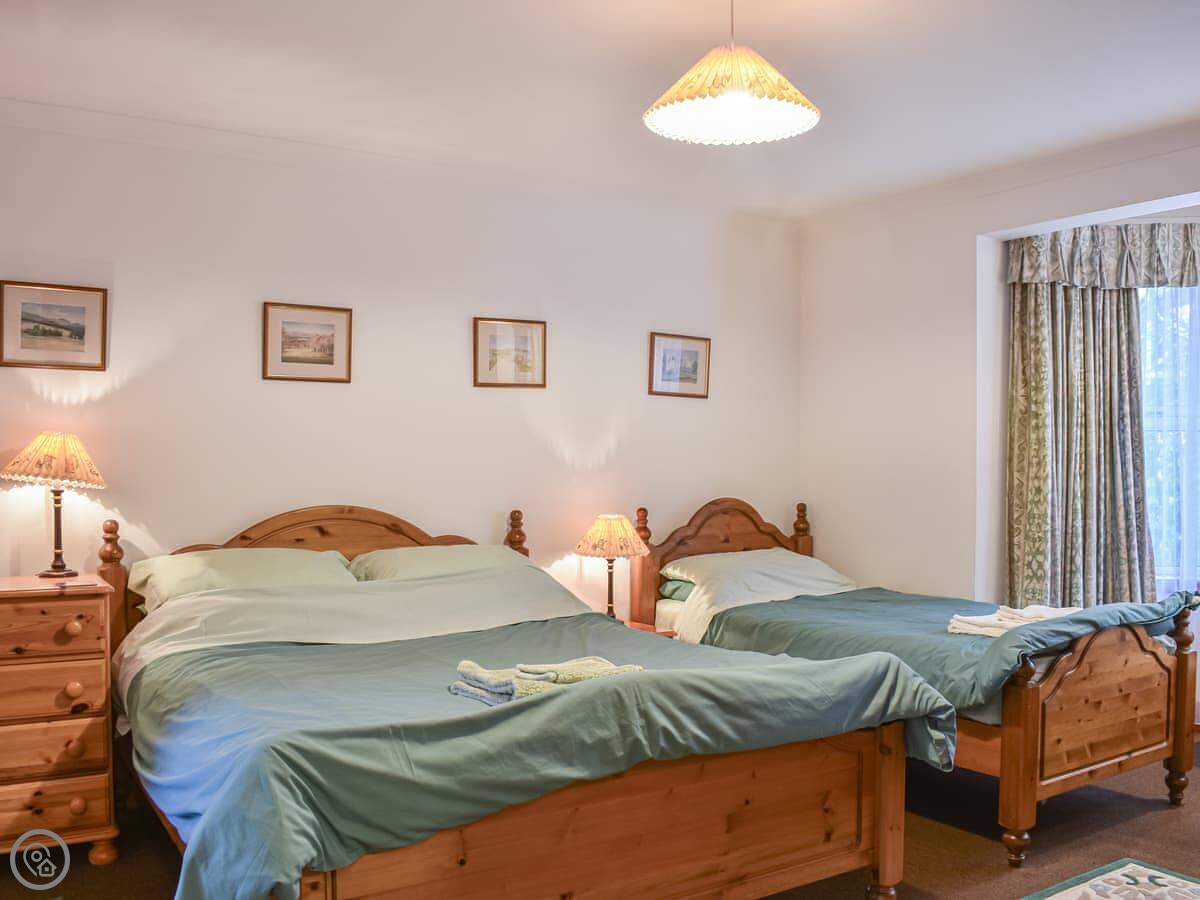 It sleeps two. One bedroom with a king-size bed and a single bed. One bathroom and a separate downstairs toilet. It's a 3 Star place. It's comfortable and clean. The deck is the best feature.