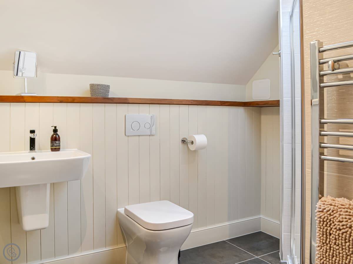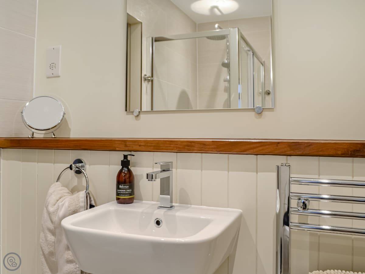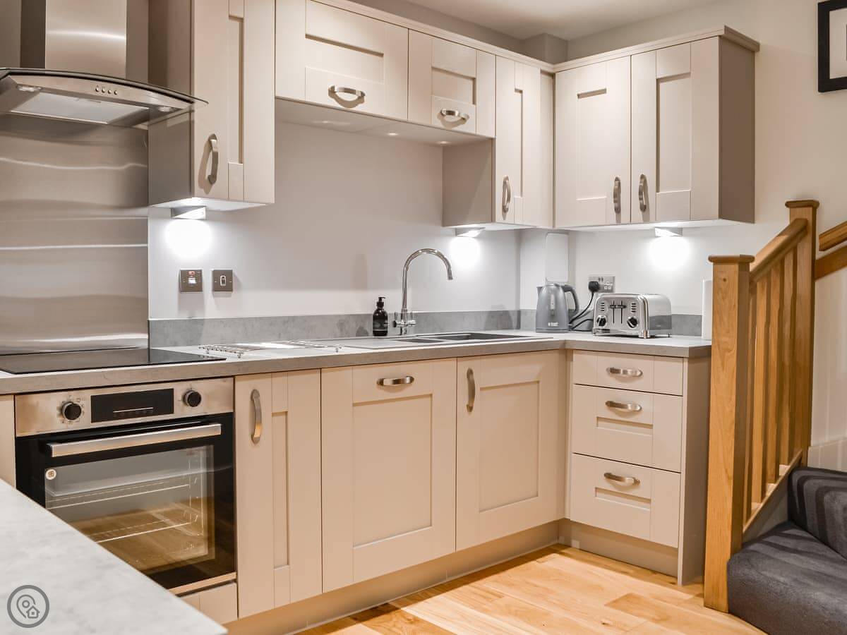 It sleeps six people in three bedrooms, and has two shower rooms. It's got a 4 Star rating. Everything is fairly new and works properly. The main living area downstairs is open plan, so the kitchen, dining and sitting room are all in one space. The stairs are normal. You can bring one dog.