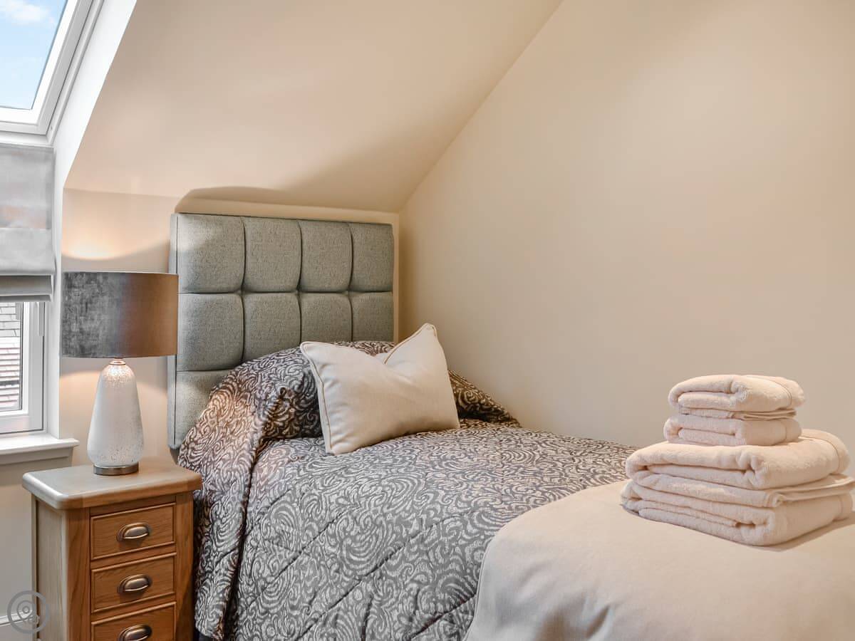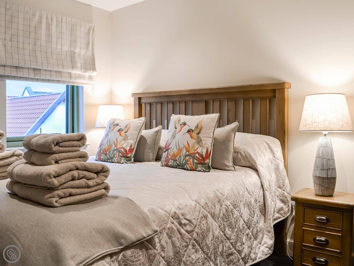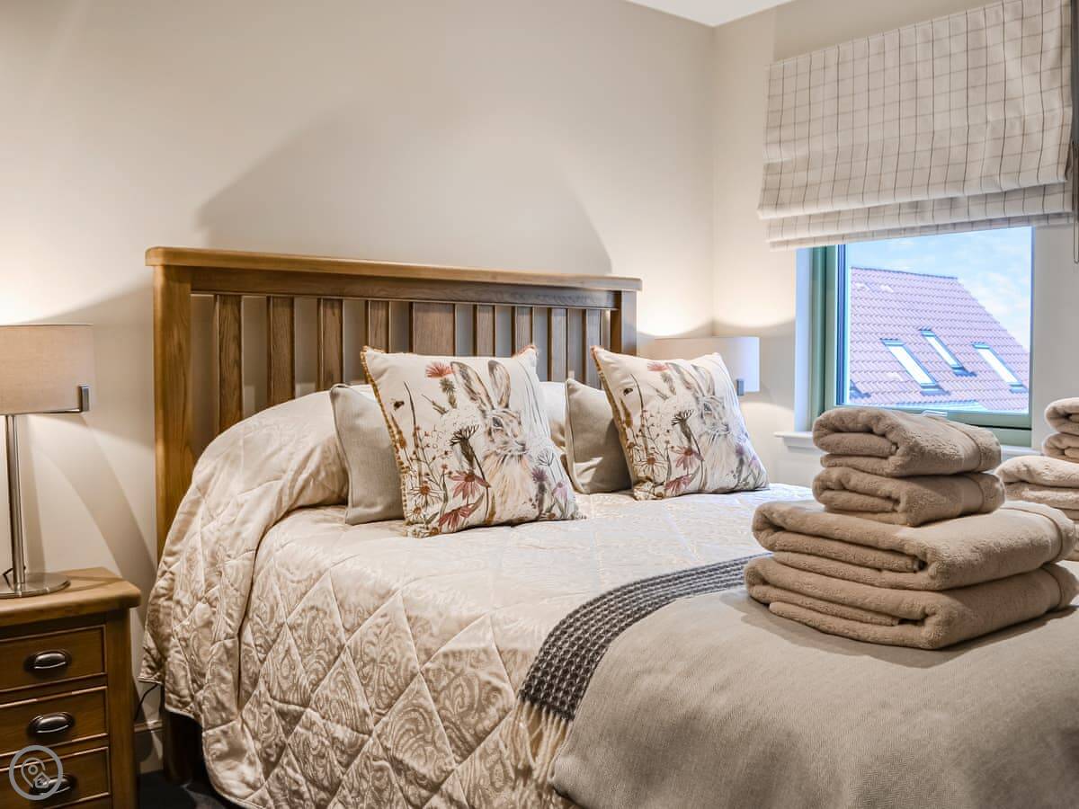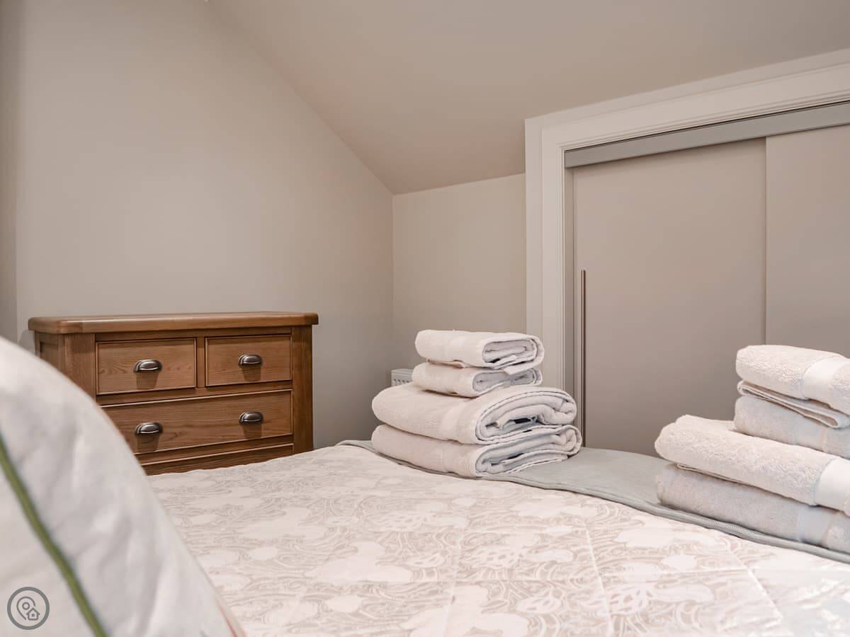 It sleeps six people in three bedrooms, and has two shower rooms. It's got a 4 Star rating. Everything is fairly new and works properly. The main living area downstairs is open plan, so the kitchen, dining and sitting room are all in one space. The stairs are normal. You can bring one dog.