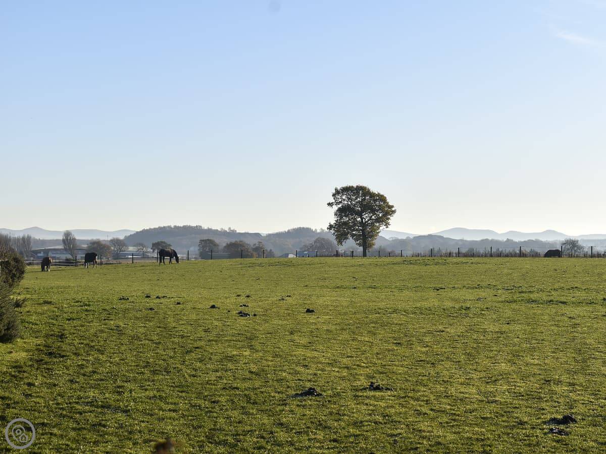 Outside, there's a small enclosed garden. You can walk around the farm on grass tracks; it's about two miles if you do the whole loop. It's good for dogs. There's a place to store bikes. We also have an electric vehicle charger.