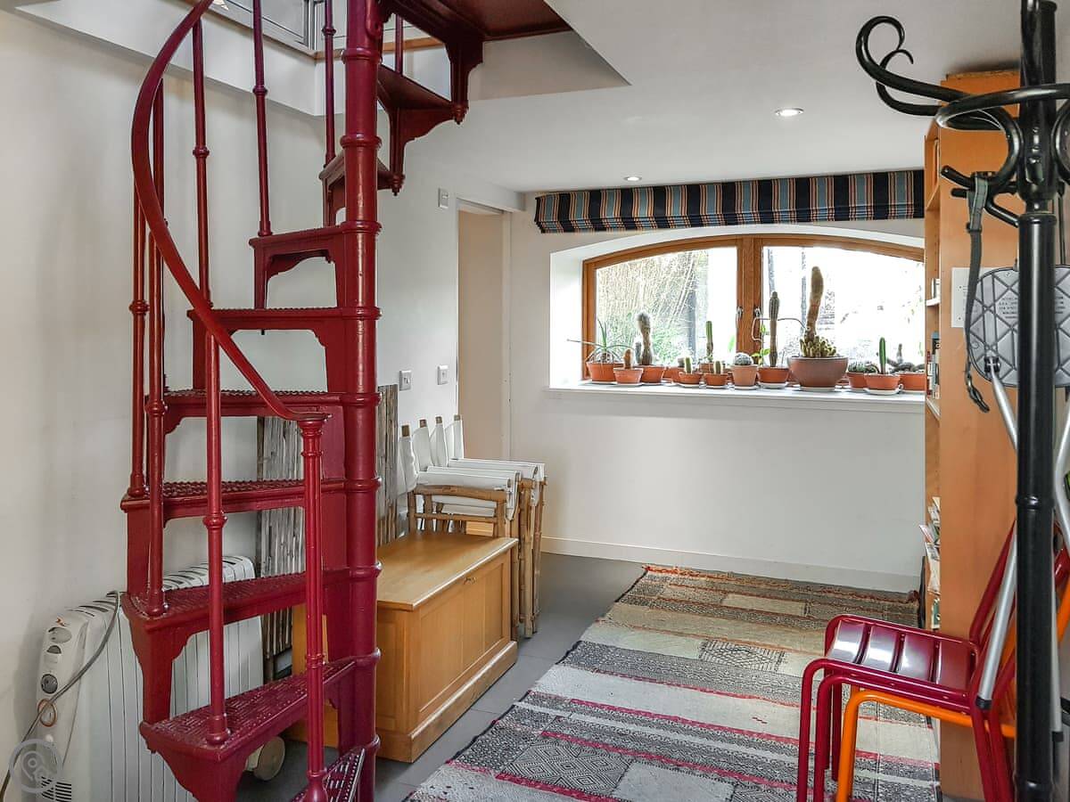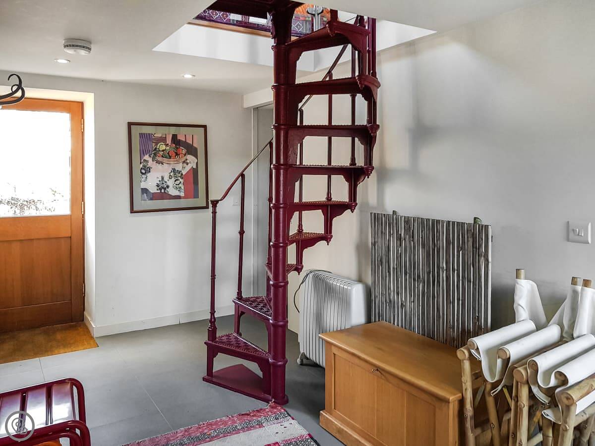 It's a conversion, so it's full of character but that means some things are unusual. There's a spiral staircase inside. It's open and steep. Something to be aware of if you have very young children or anyone less steady on their feet. The furniture is a mix, some of it is vintage. The kitchen, bathroom and beds are all modern though.