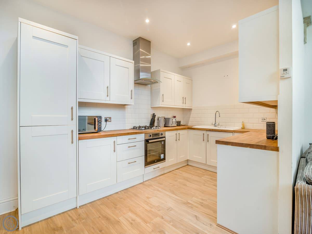 In terms of facilities, you've got the main things: WiFi, TV, washing machine, dishwasher. Bedding and towels are included. There's parking on site. We can take up to two dogs.