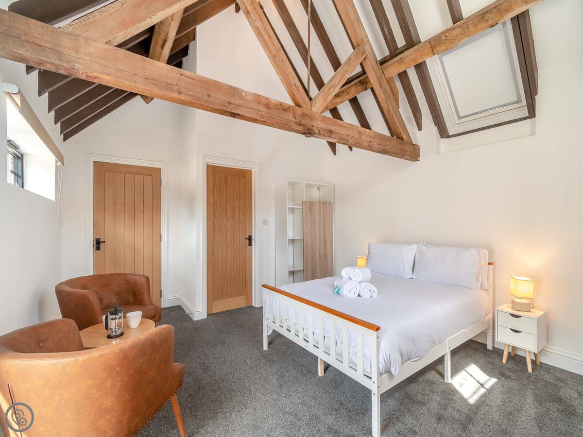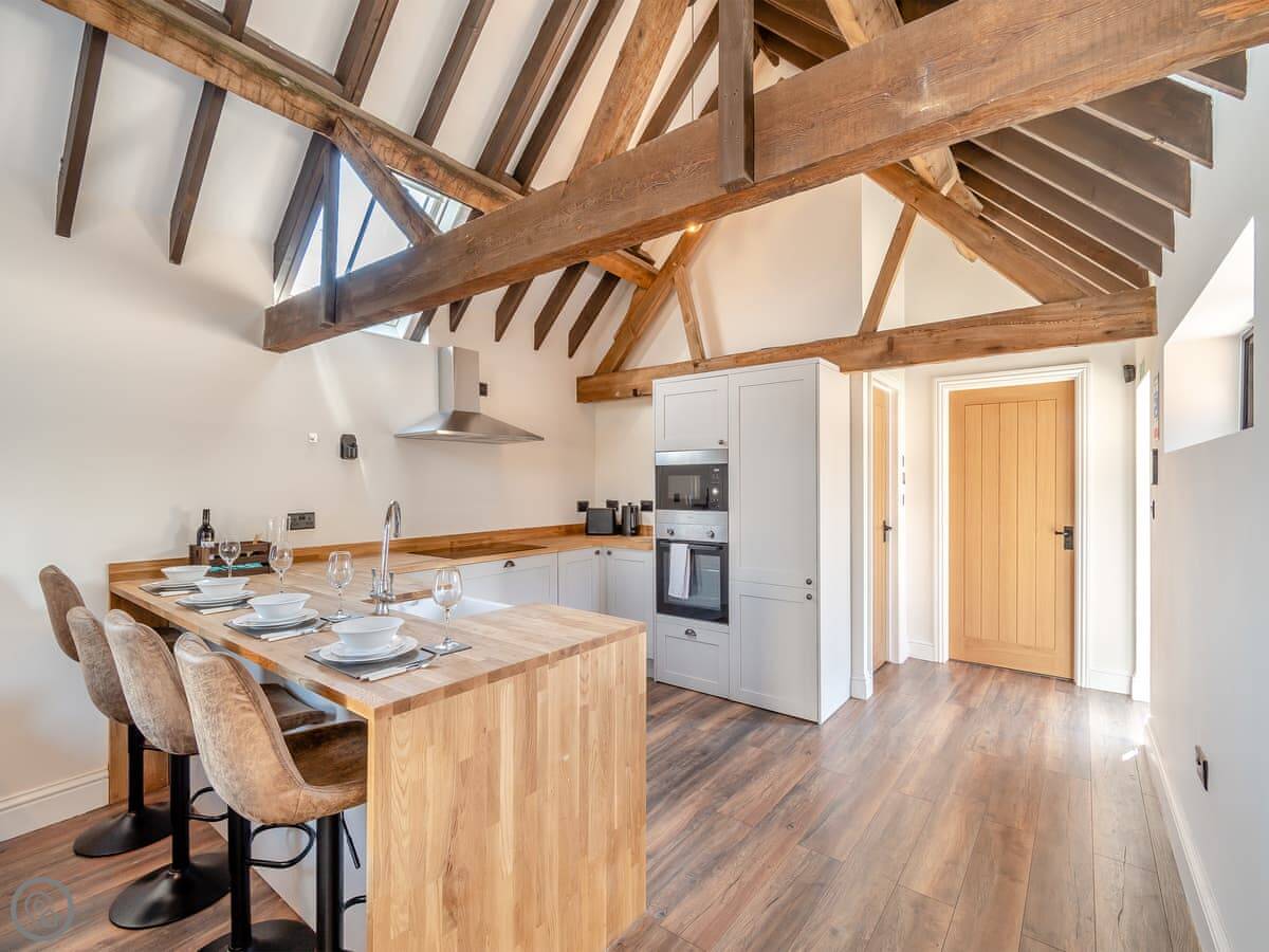 Corley Rocks Barn is one of three new barn conversions on a farm just outside Corley village. It's single-storey, so all on one level, which is handy. You look out over fields with horses and sheep.