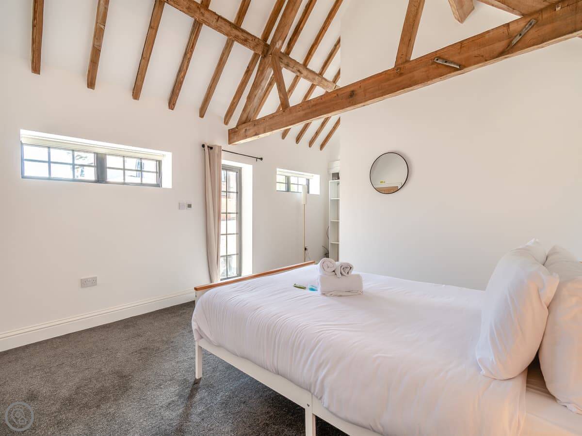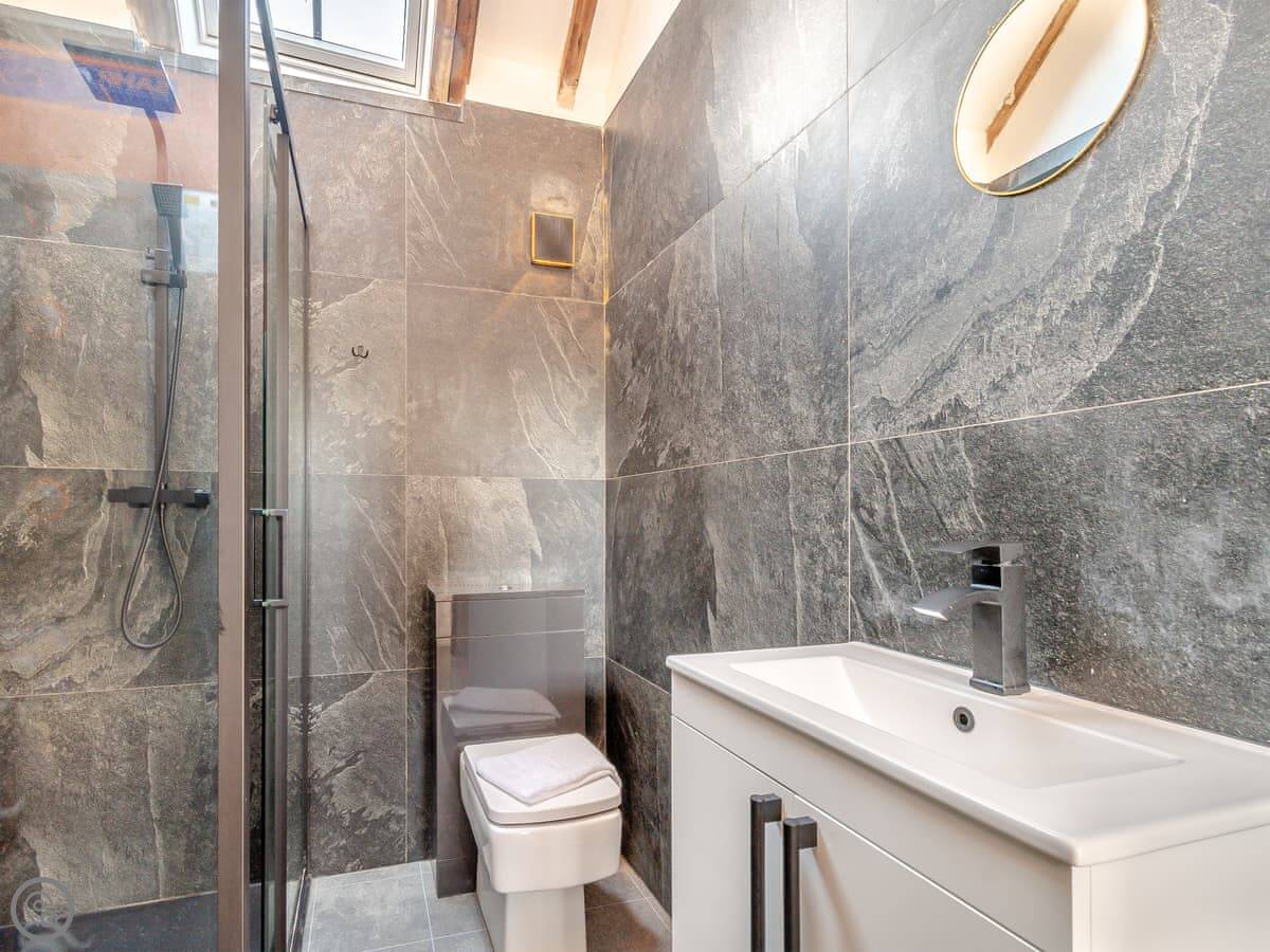 It sleeps four in two bedrooms. One has a kingsize bed and its own shower room. The other is a double, and there's a second shower room right next to it. They're both good sized. Everything's new, it's warm and it works. It has a 5 Star rating.