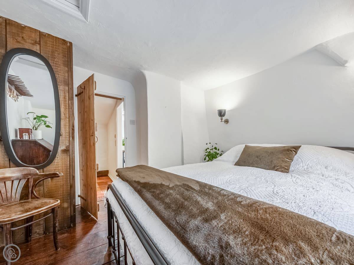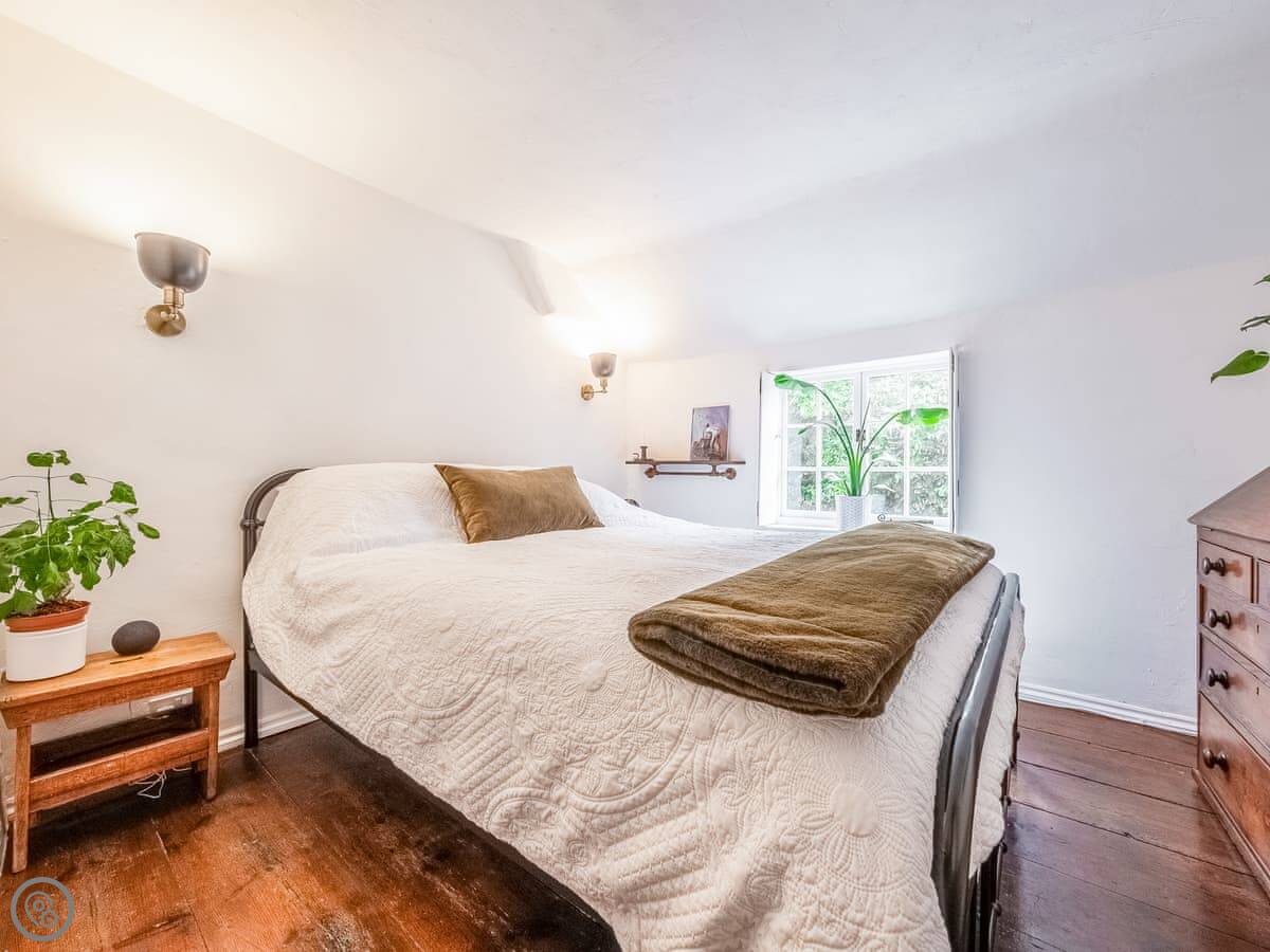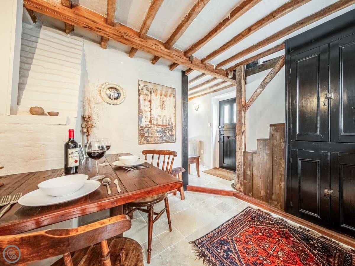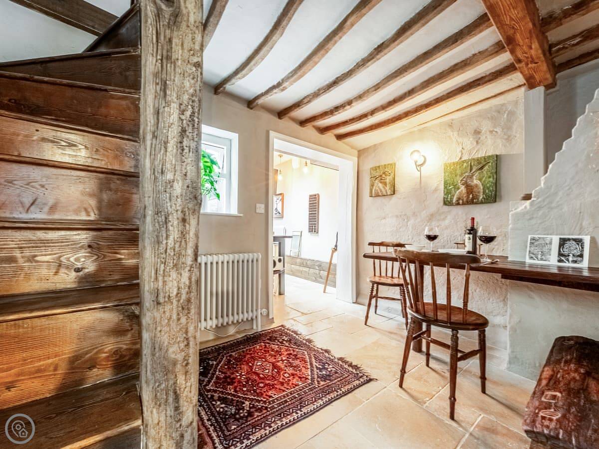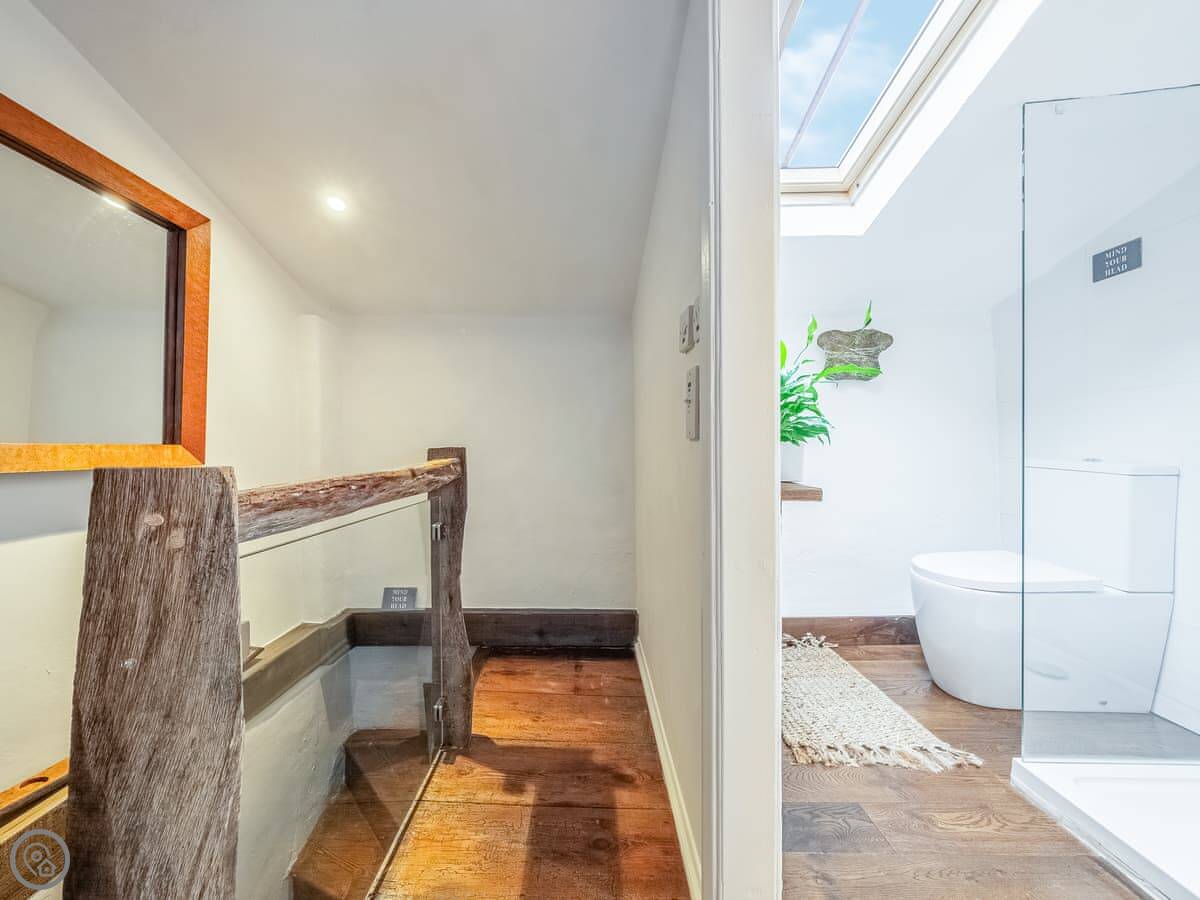 It has a 5 Star rating. We bought it when it was derelict and restored it properly. The main room is downstairs. There's a sofa by the wood burner, which works well and heats the whole place. The stairs go up from there to the bedroom. They're steep and narrow, typical for a cottage this old.