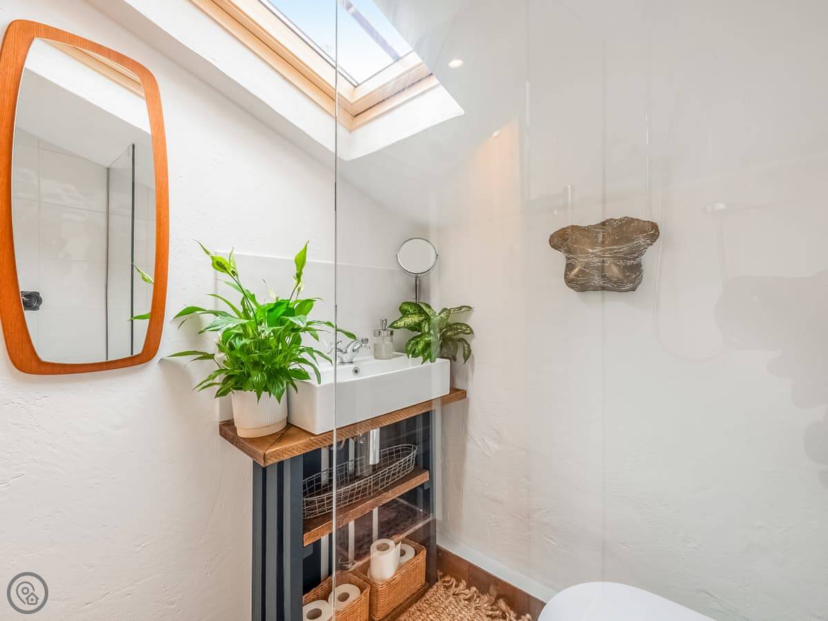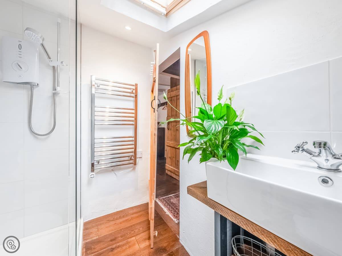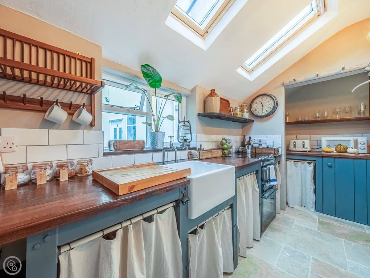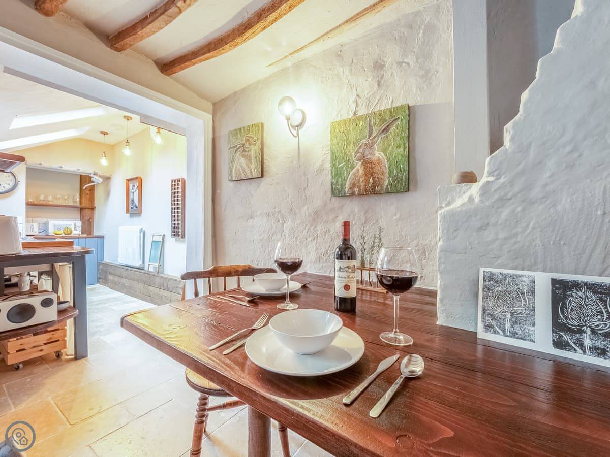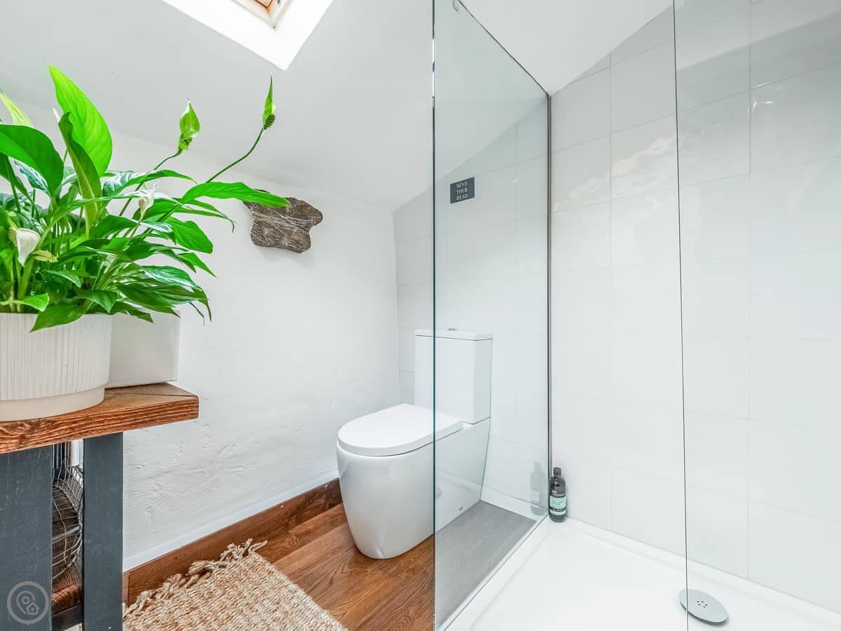 It has a 5 Star rating. We bought it when it was derelict and restored it properly. The main room is downstairs. There's a sofa by the wood burner, which works well and heats the whole place. The stairs go up from there to the bedroom. They're steep and narrow, typical for a cottage this old.