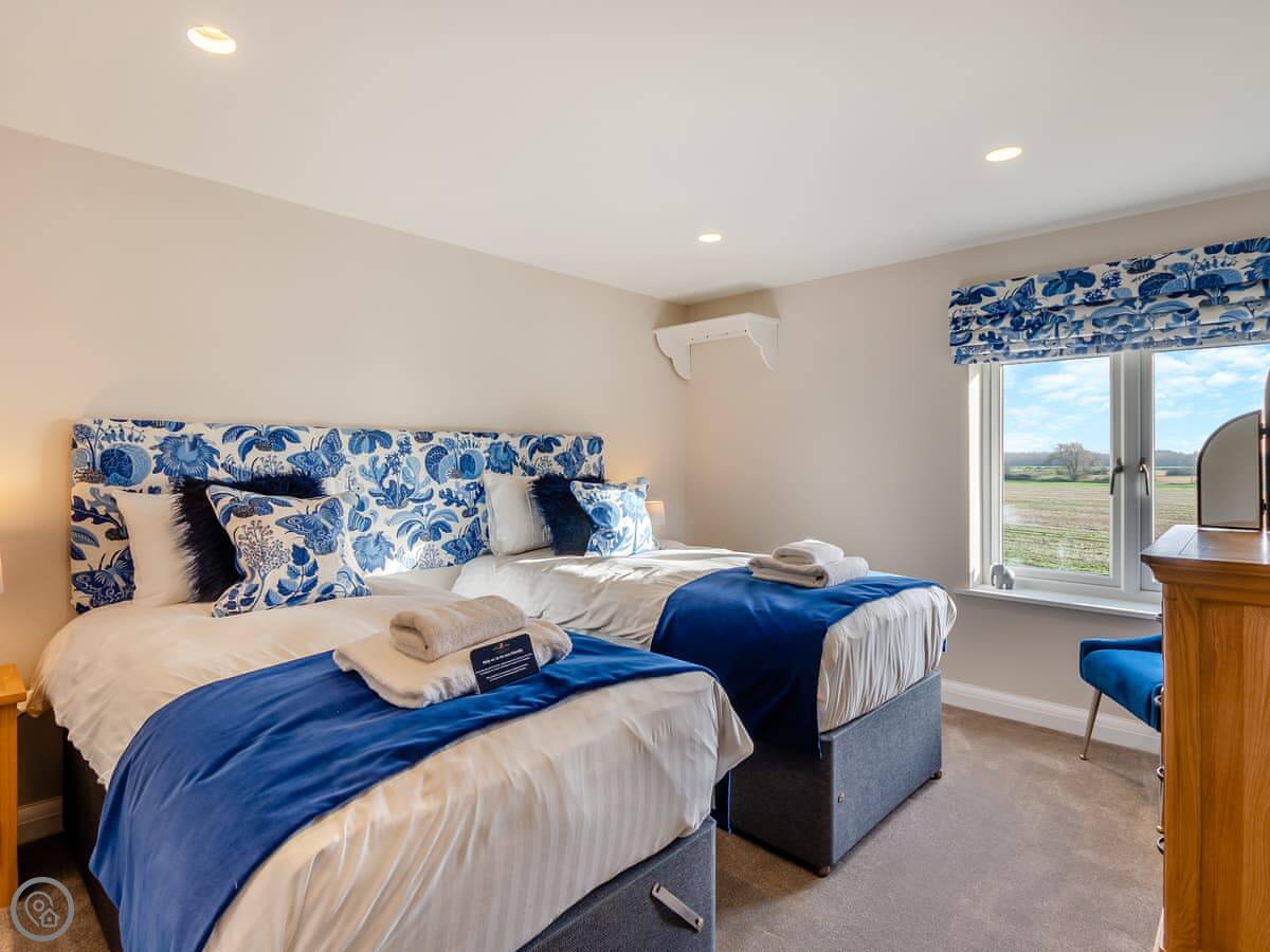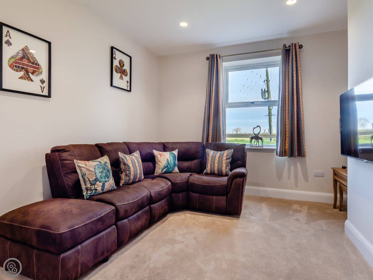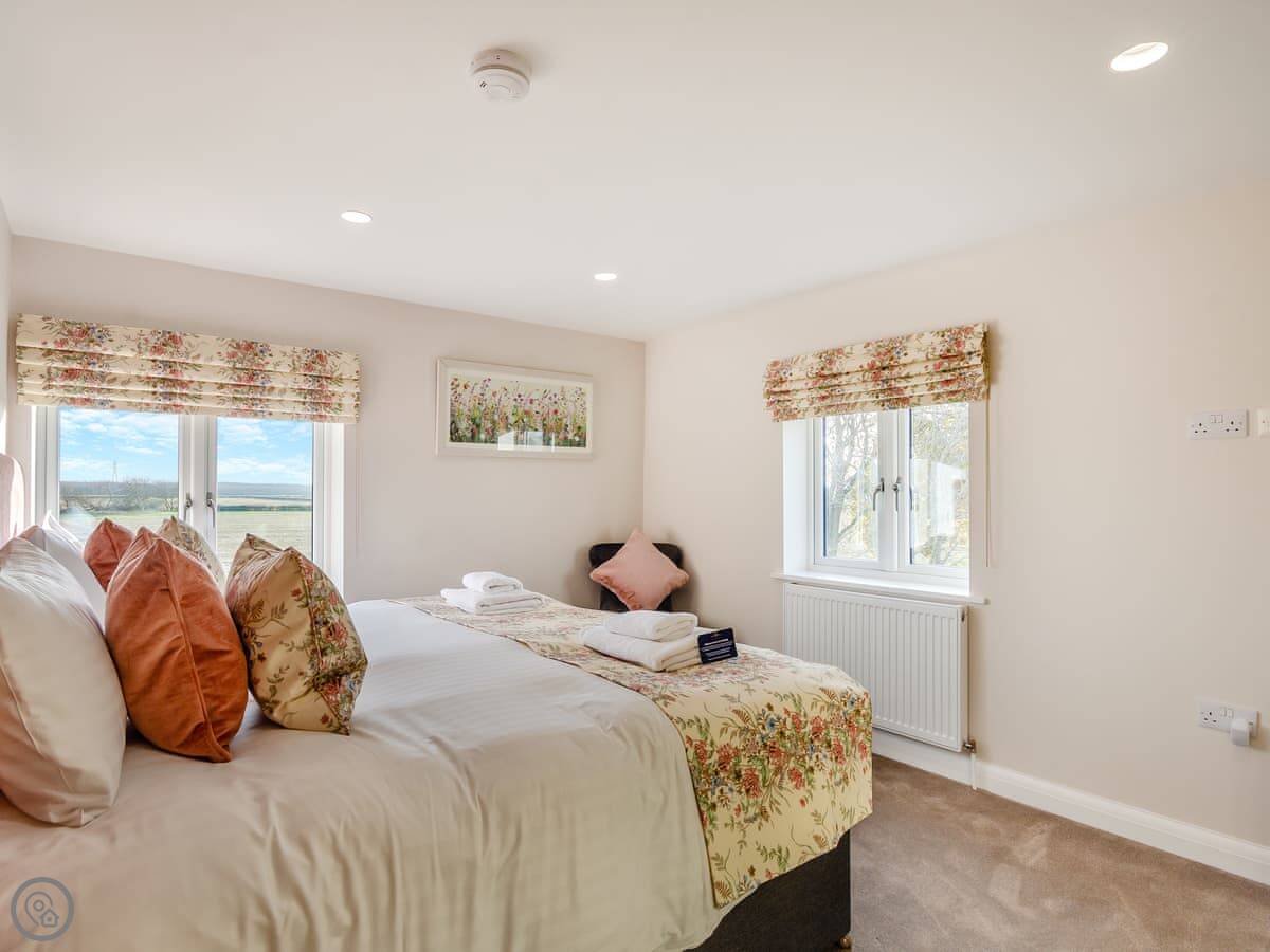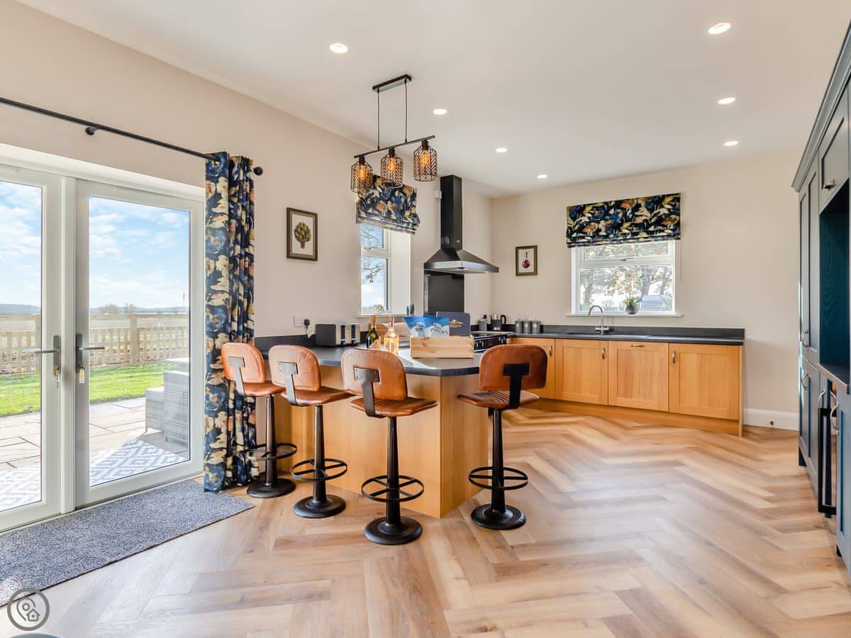 It's got a 5 Star rating, which in this case means it's finished to a high standard. Underfloor heating, Smart TVs you can log into, that sort of thing. There's a hot tub, an enclosed garden, and a woodburning stove. It's on a working farm, so you might see tractors about. There's plenty of parking.