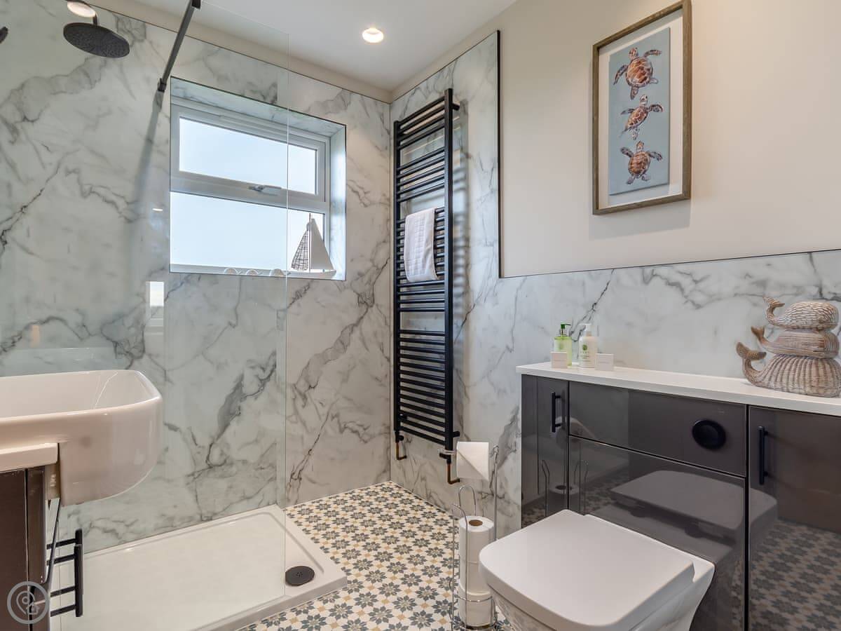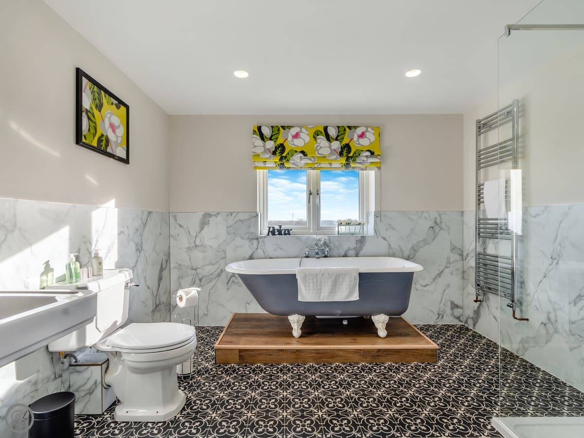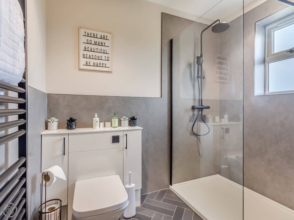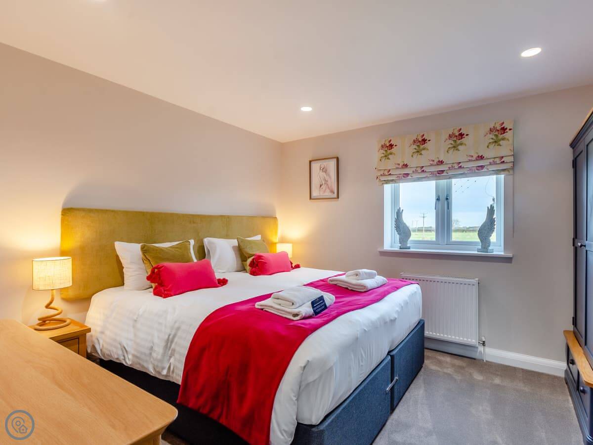 It's got a 5 Star rating, which in this case means it's finished to a high standard. Underfloor heating, Smart TVs you can log into, that sort of thing. There's a hot tub, an enclosed garden, and a woodburning stove. It's on a working farm, so you might see tractors about. There's plenty of parking.