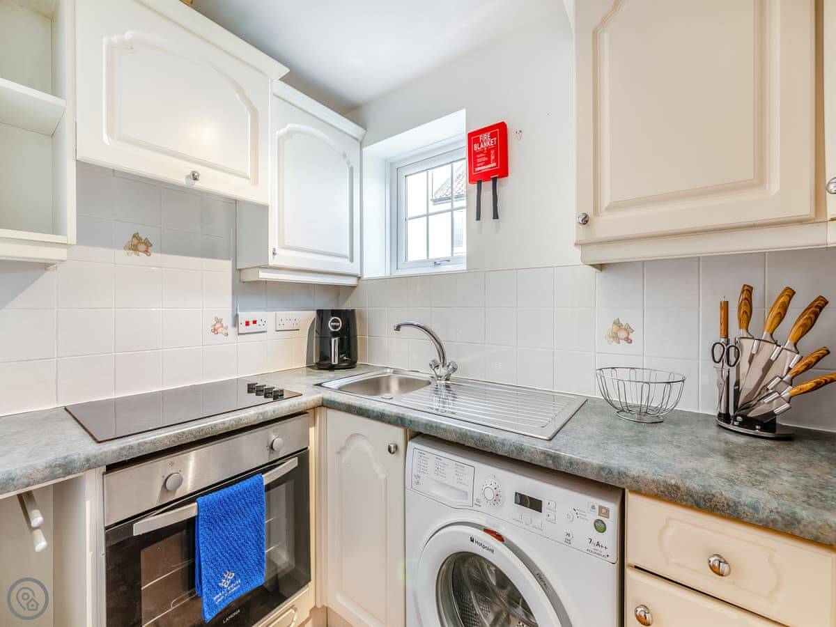 In terms of what's here, it has a washing machine, dishwasher, and WiFi. Bedding and towels are included. There's a cot and highchair if you need them. It accepts up to two dogs. There's an electric vehicle charger in the courtyard.