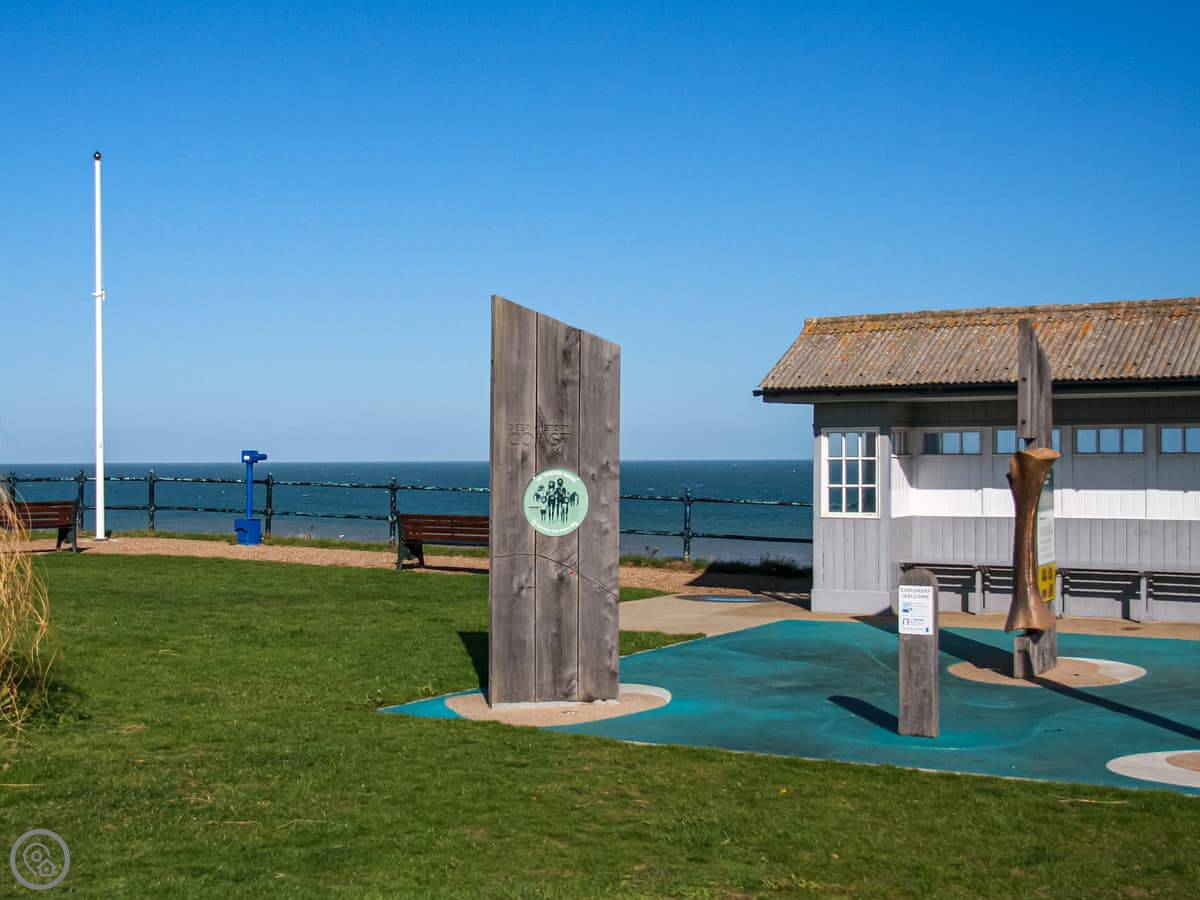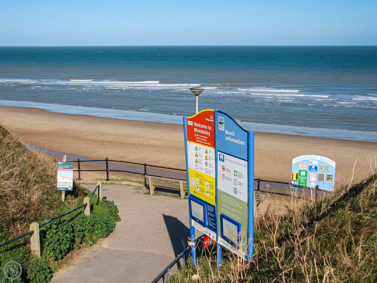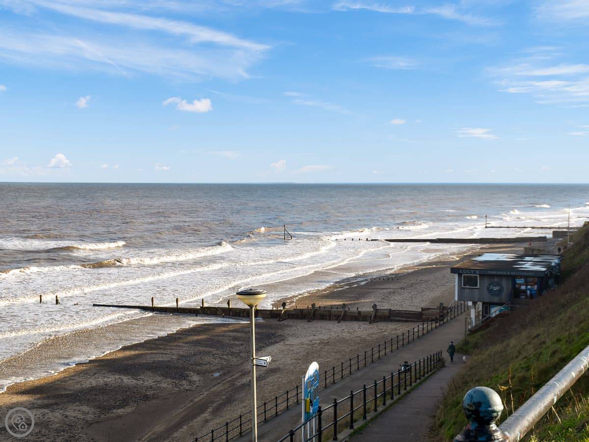 For walks, you can pick up the Norfolk Coast Path nearby. Cromer is about fifteen minutes drive south. It's got a pier and crab fishing. Sheringham is a bit further, maybe twenty minutes. The steam railway is there. North of Mundesley, Happisburgh has a lighthouse you can see from the coast road.
