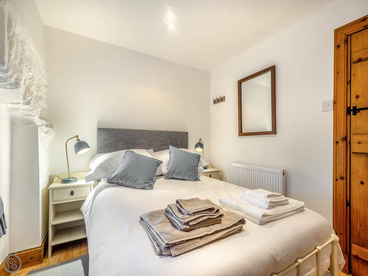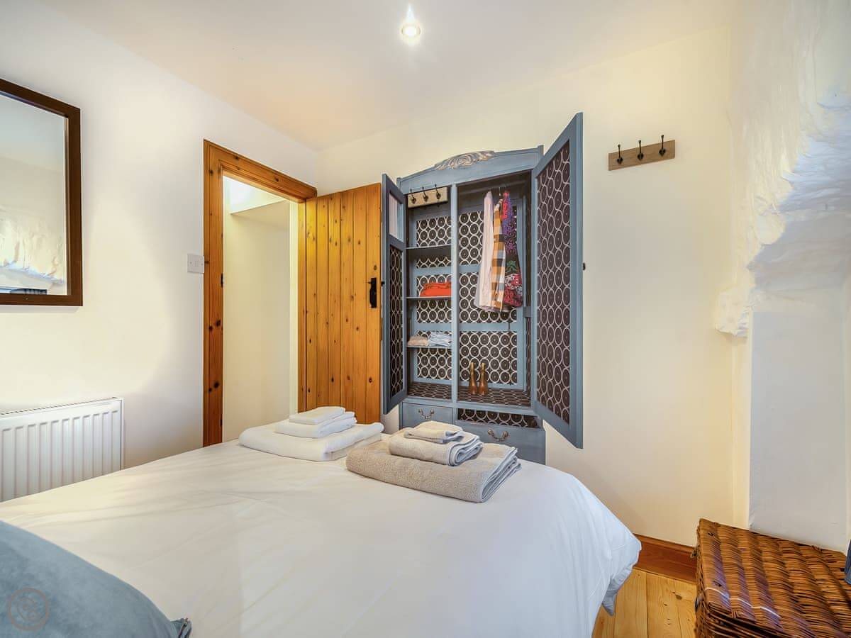 It sleeps three in two bedrooms. One double, one single. There's one bathroom. It's got a 4 Star rating. There's a wood burner in the living area. You need to bring your own wood or buy it locally. The stairs up to the bedrooms are a bit steep, as you'd expect in an old building.