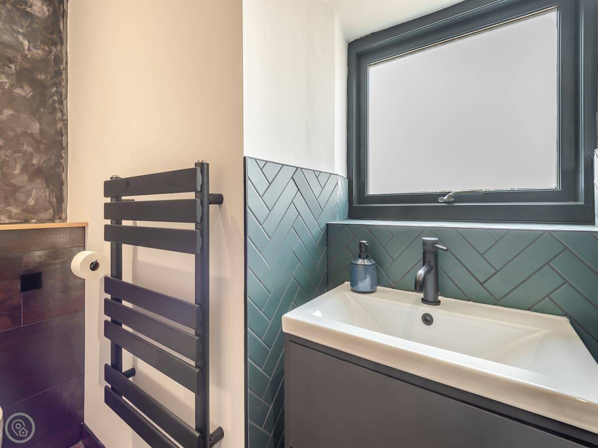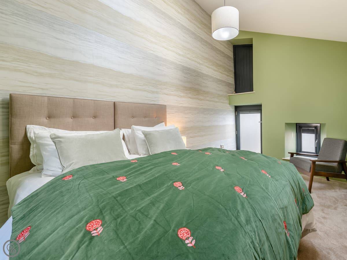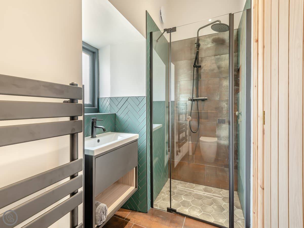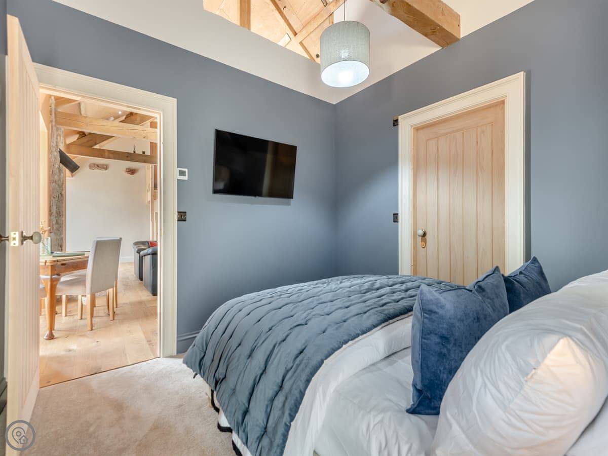 It sleeps four. Two bedrooms, both downstairs, and two bathrooms. One is an en-suite to the main bedroom. The other has a separate bath and shower.