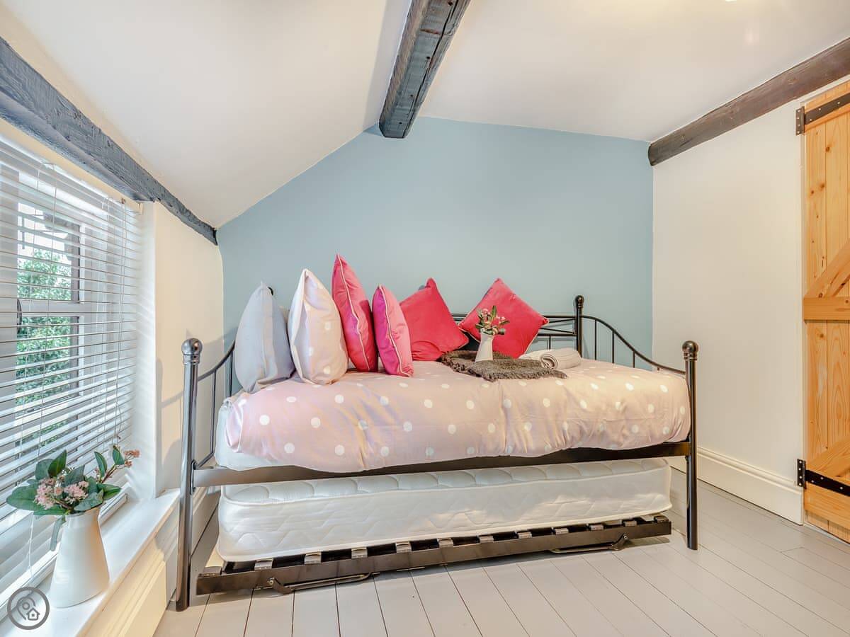 It sleeps six. Three bedrooms, one bathroom. It's got a 4 Star rating, so it's comfortable and well looked after. The bathroom is upstairs.