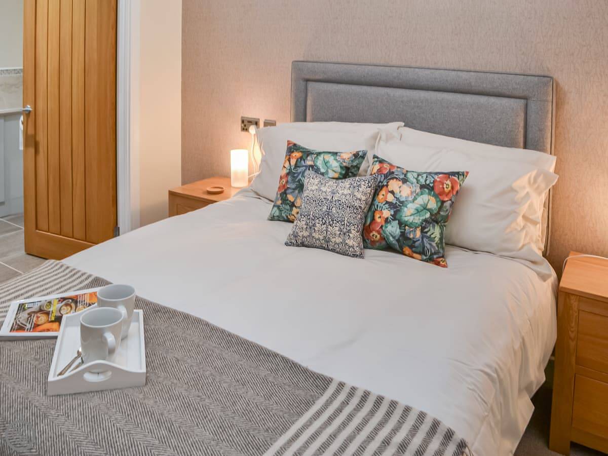 It's all on one level, so no stairs. It sleeps two in the one bedroom. There's one bathroom with a shower. It's modern inside. Open plan living and kitchen area. There's a wood burner for cooler evenings. We're rated 4 Star.