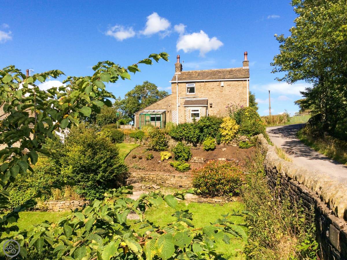 Holme House Cottage is in Goose Eye, near Oakworth. It's about two miles from Haworth. It's a detached cottage, stone built, from the 1600s. It's got a thatched roof.