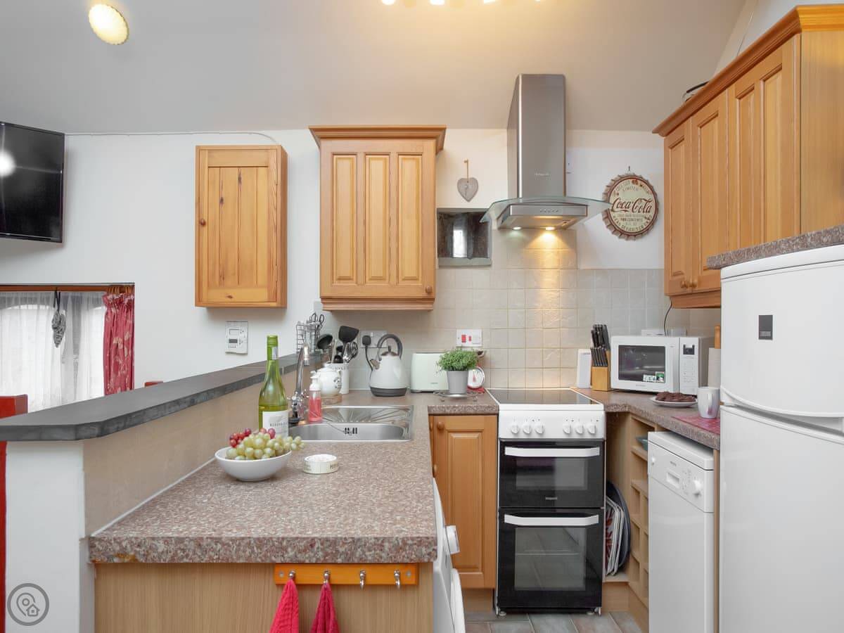 There's a woodburner in the living room. It gets the place warm. There's a dishwasher and a washing machine. Bedding and towels are included. You can bring one dog.