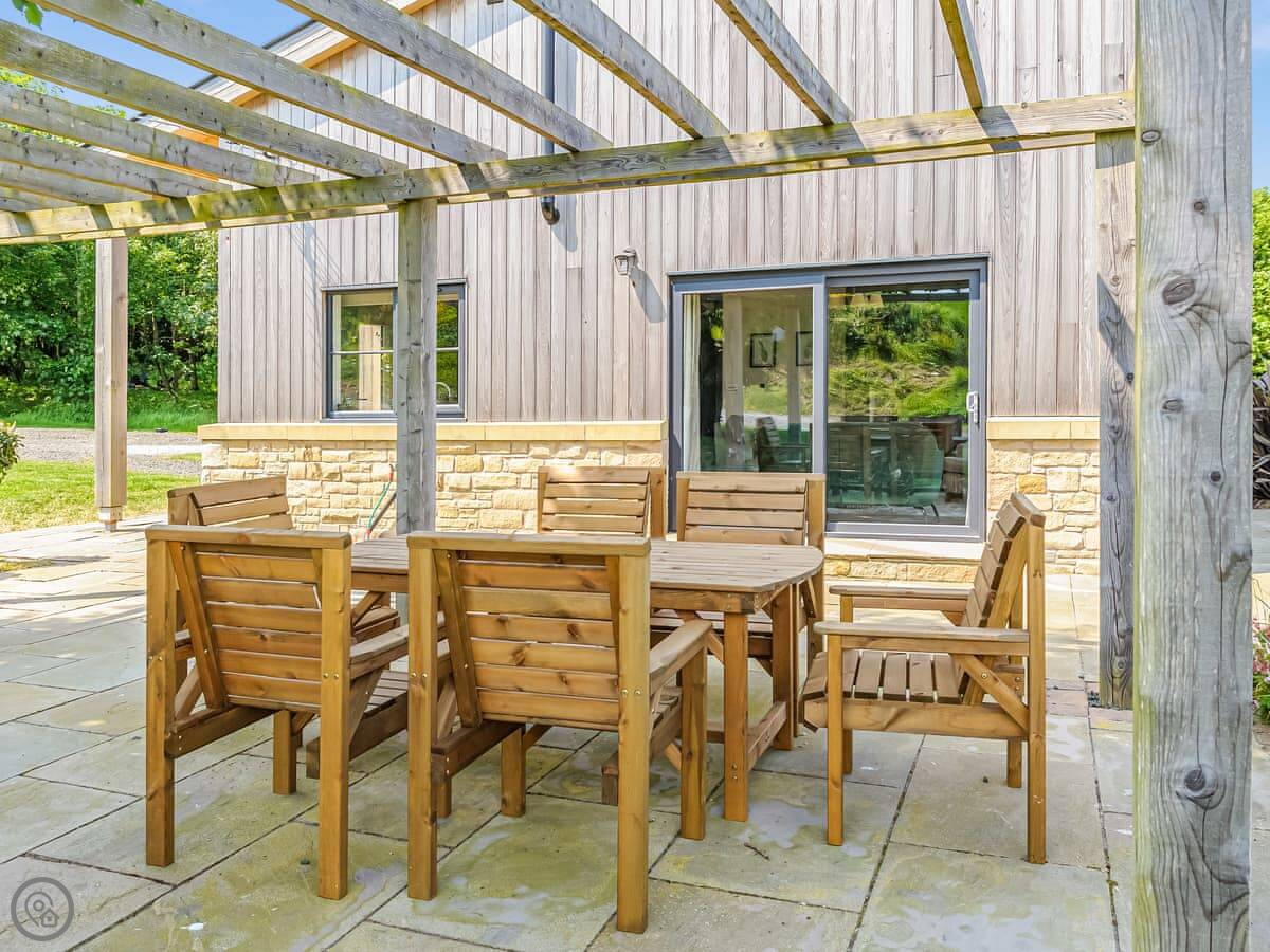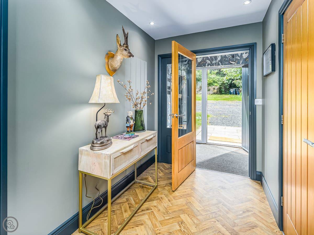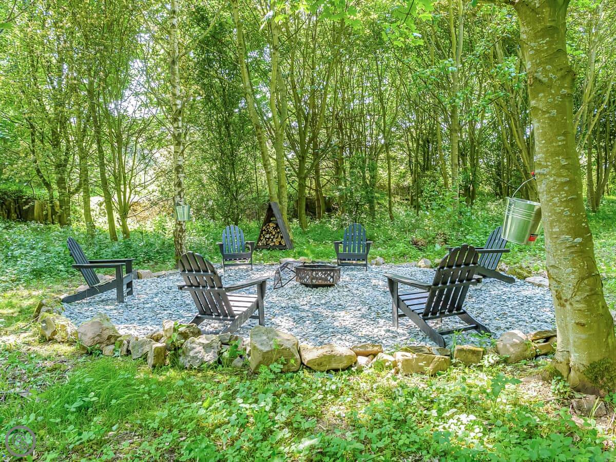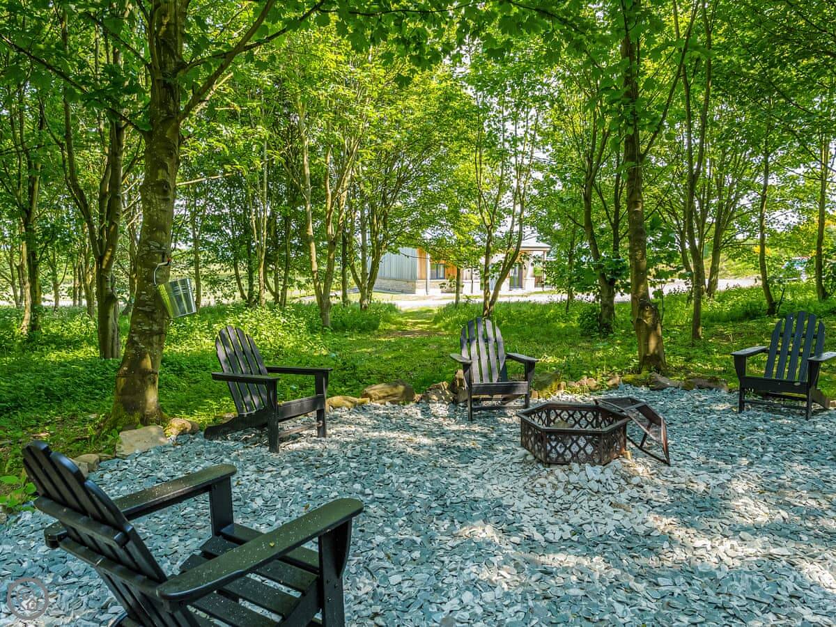 It has a wood burning stove, a hot tub in the garden, and a BBQ hut. The kitchen is open plan with a dining area. There's a second sitting room as well. Washing machine, dishwasher, WiFi, all that's included.