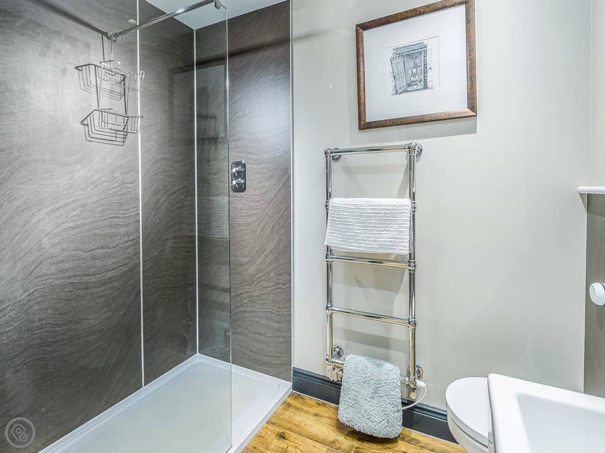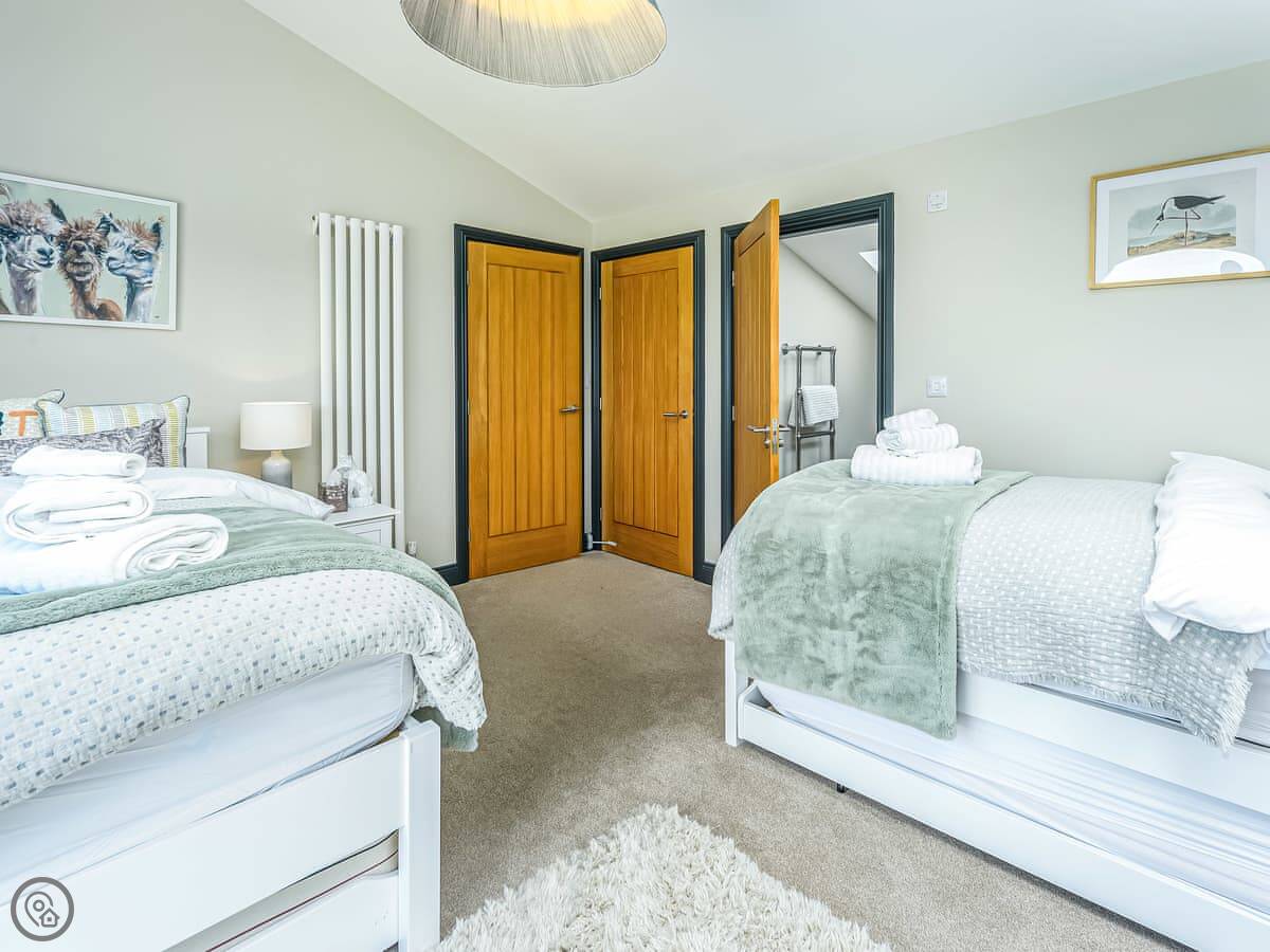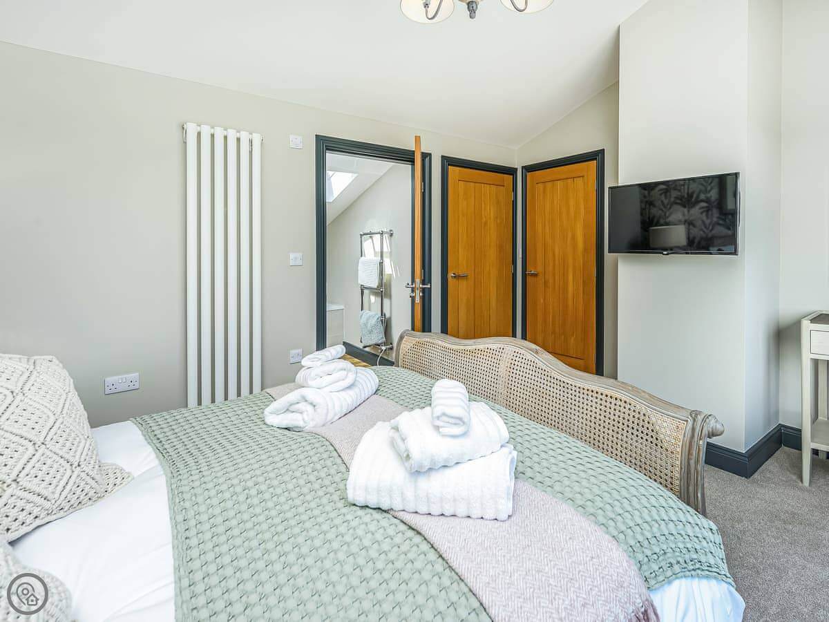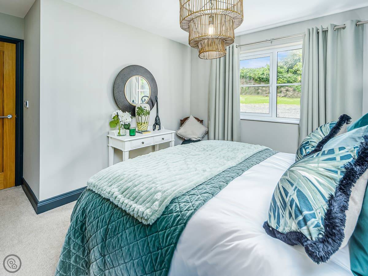 The place sleeps six. Three bedrooms, all with their own bathroom or shower room. It's got a 5 Star rating, so it's well equipped and comfortable. One bedroom is on the ground floor, the other two are upstairs.