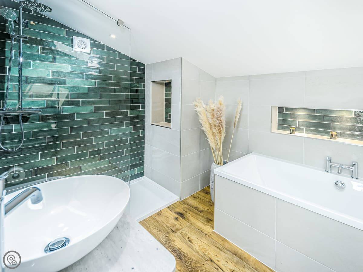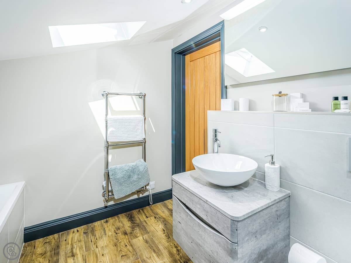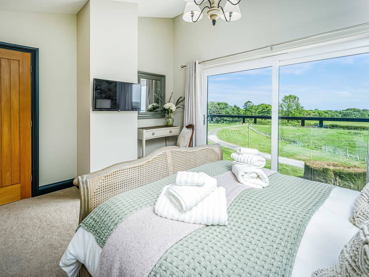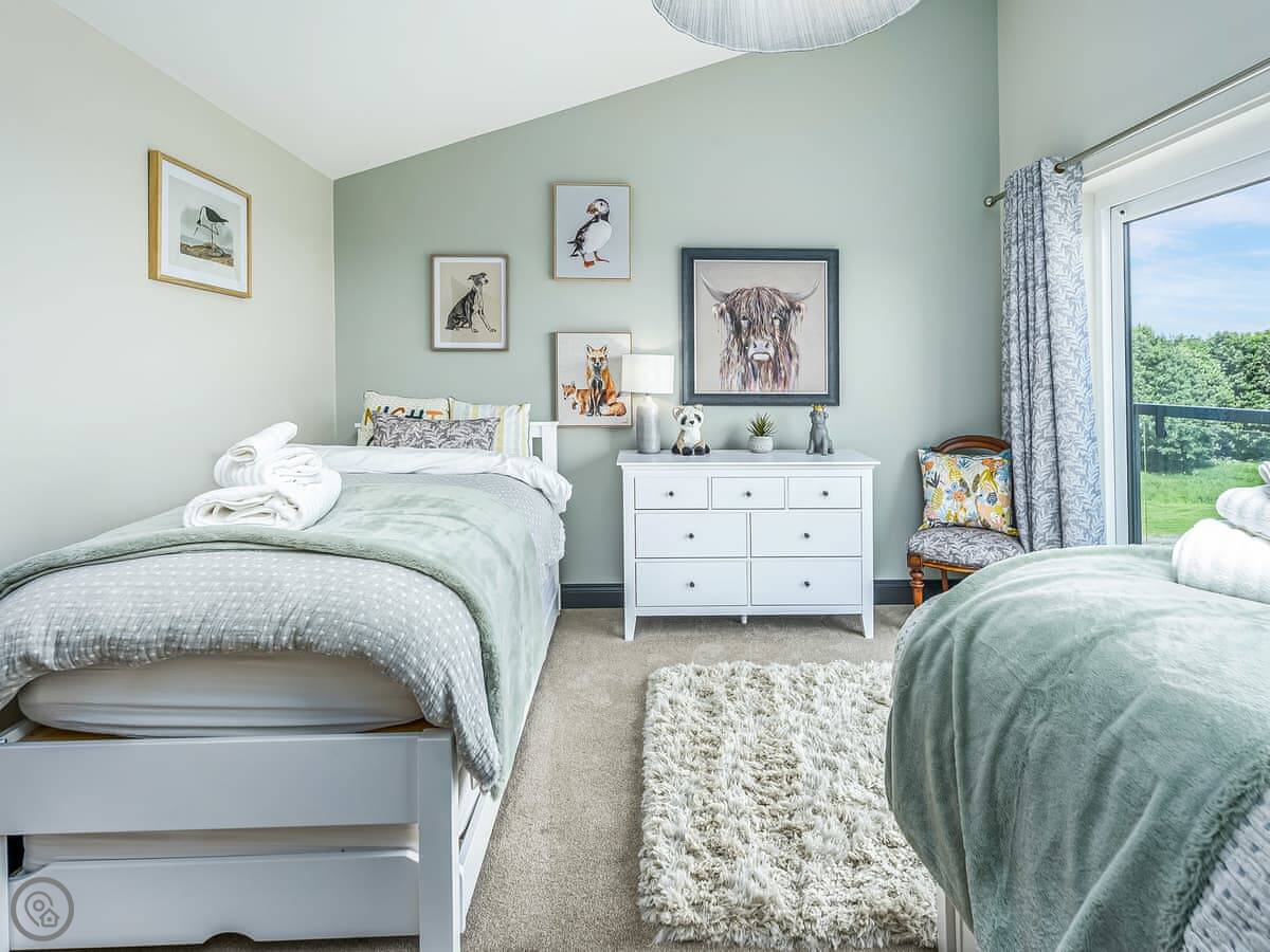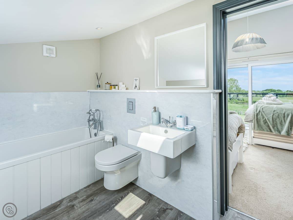 The place sleeps six. Three bedrooms, all with their own bathroom or shower room. It's got a 5 Star rating, so it's well equipped and comfortable. One bedroom is on the ground floor, the other two are upstairs.