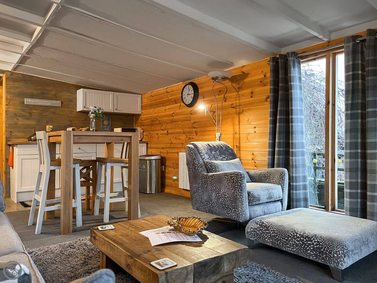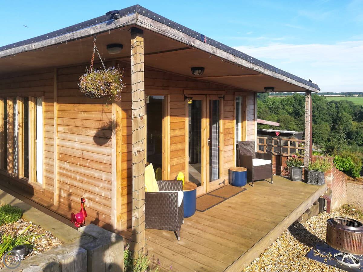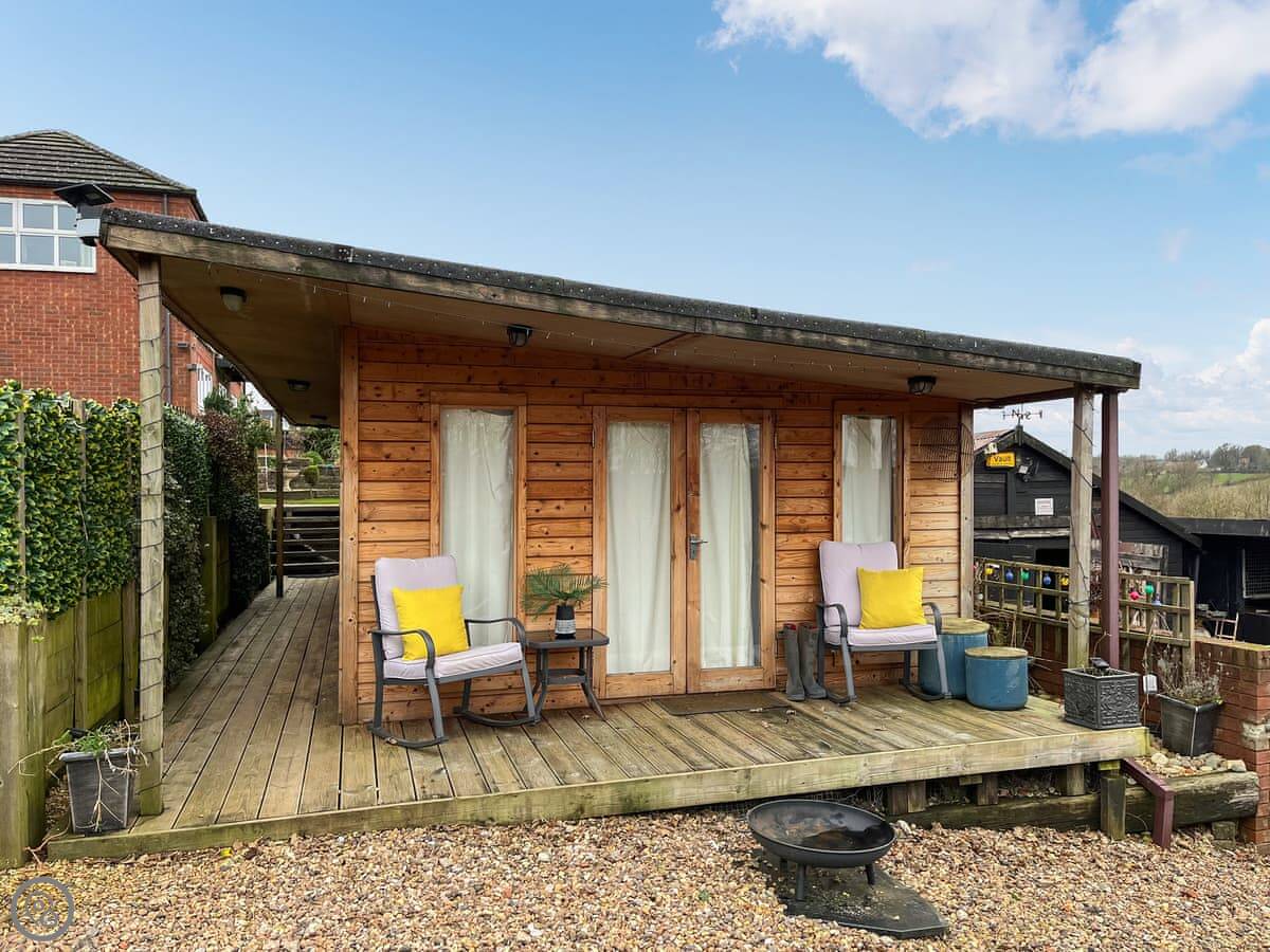 Peaceful Cabin Retreat is the name, but we just call it the lodge. It's in our garden in Skegby, Nottinghamshire. It's a wooden cabin for two people.