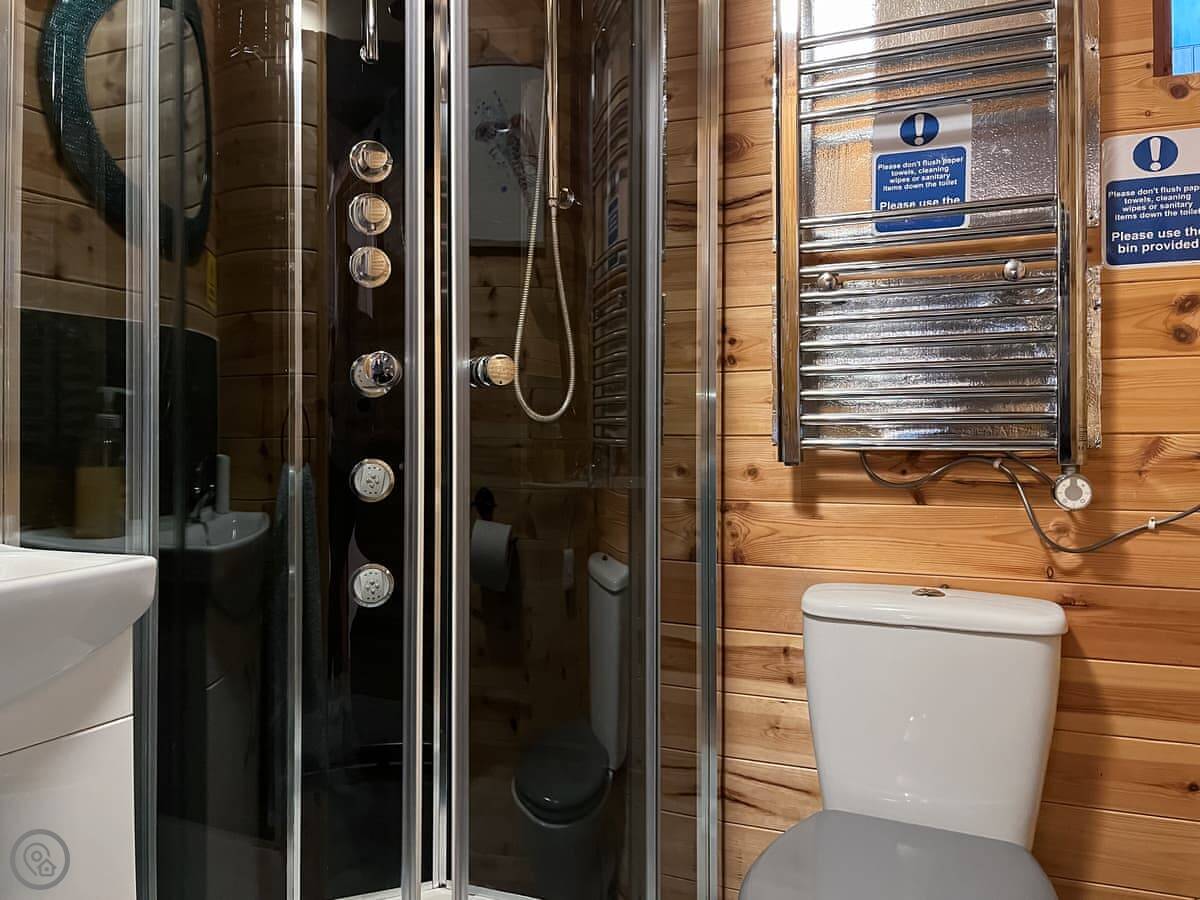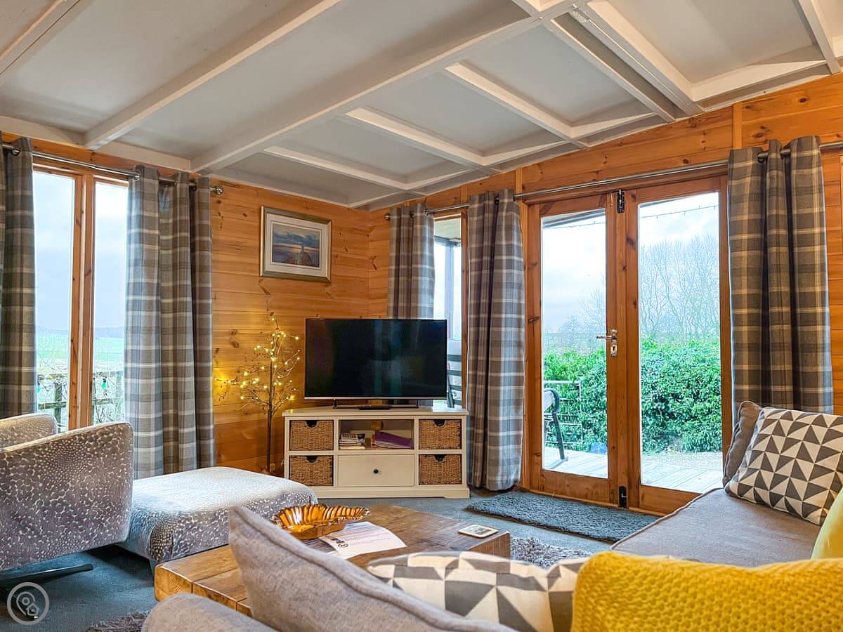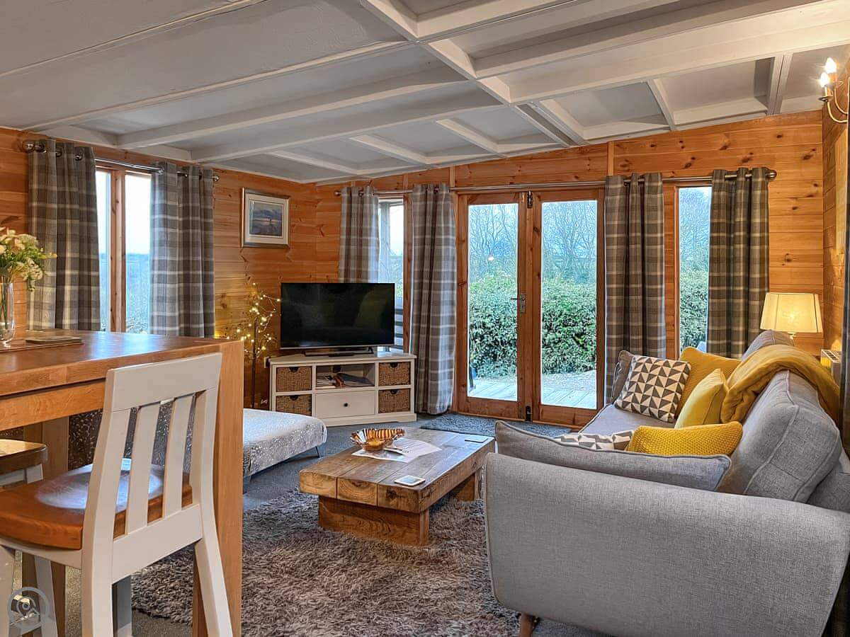 Peaceful Cabin Retreat is the name, but we just call it the lodge. It's in our garden in Skegby, Nottinghamshire. It's a wooden cabin for two people.