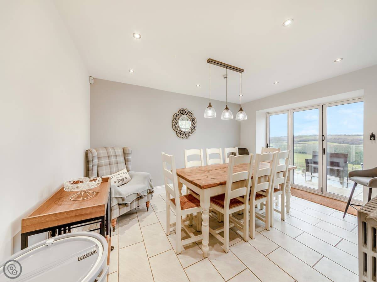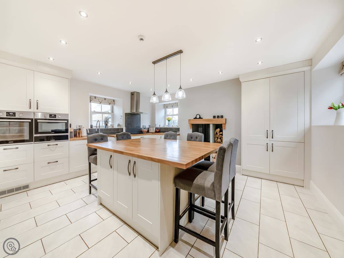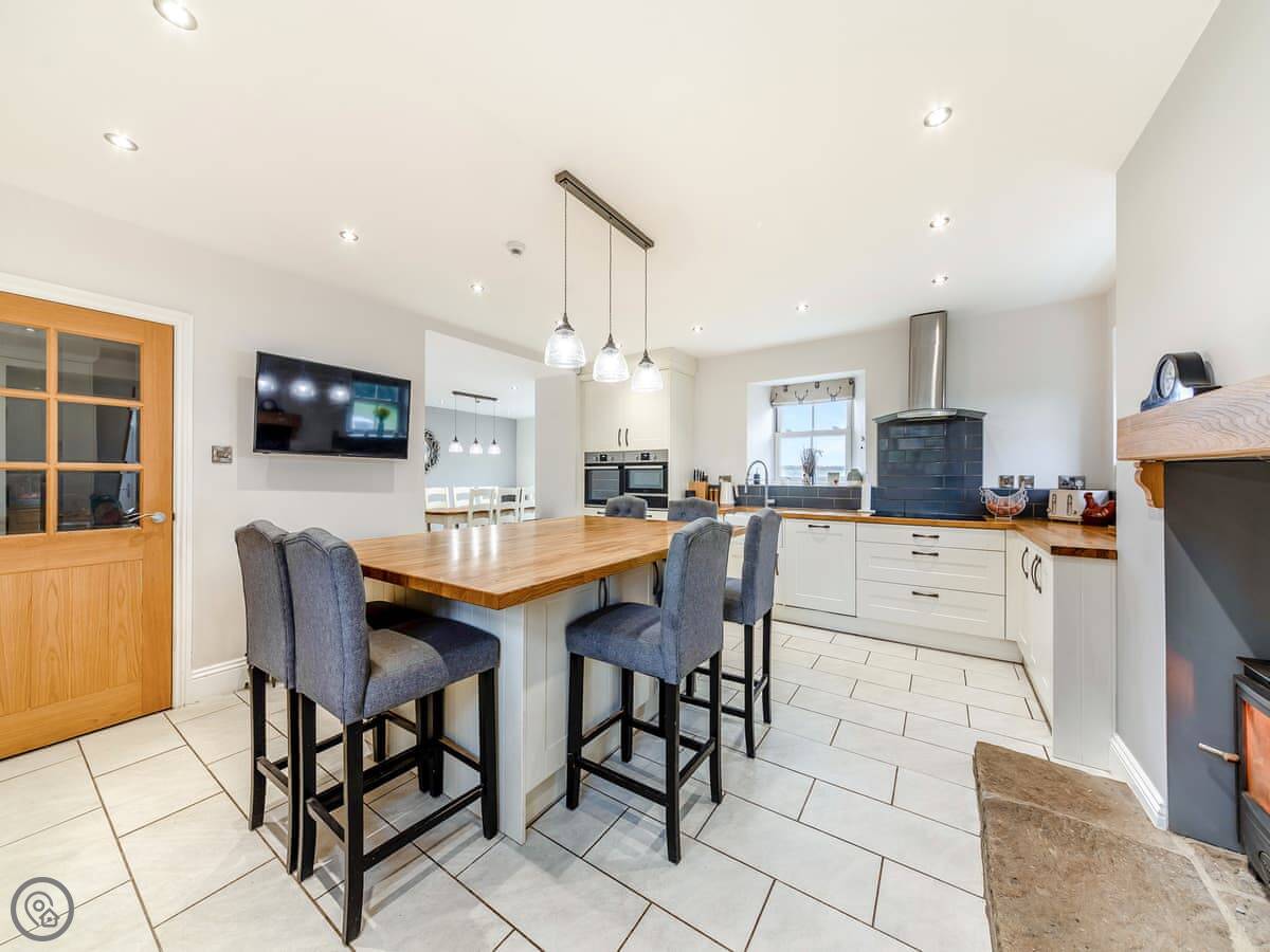 It's got a 5 Star rating, which reflects the standard. It's been renovated to a high spec. There are two living rooms, both with wood burners. The kitchen is open-plan with a big island and a dining table for eight.