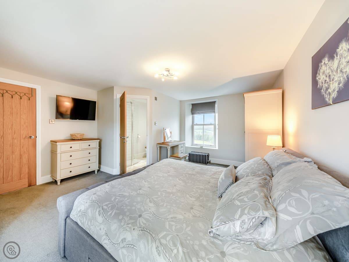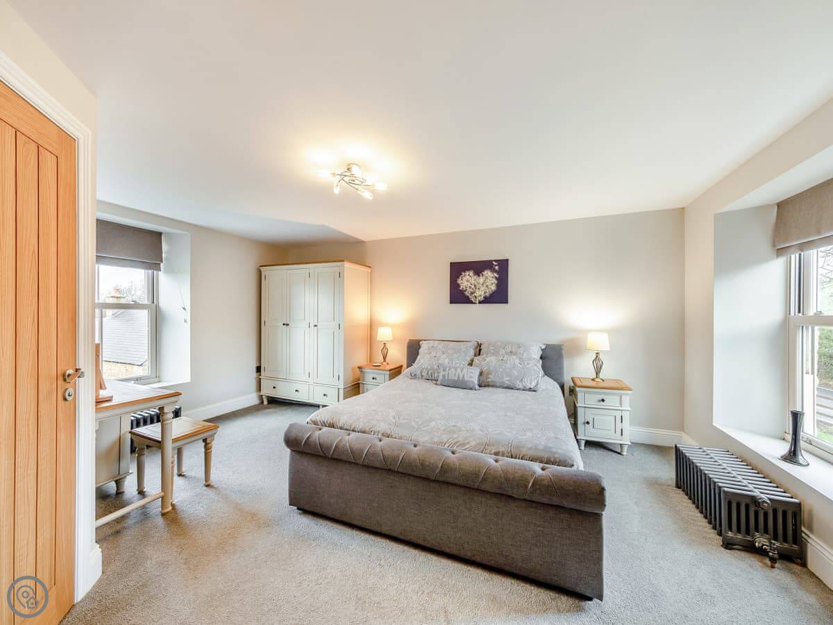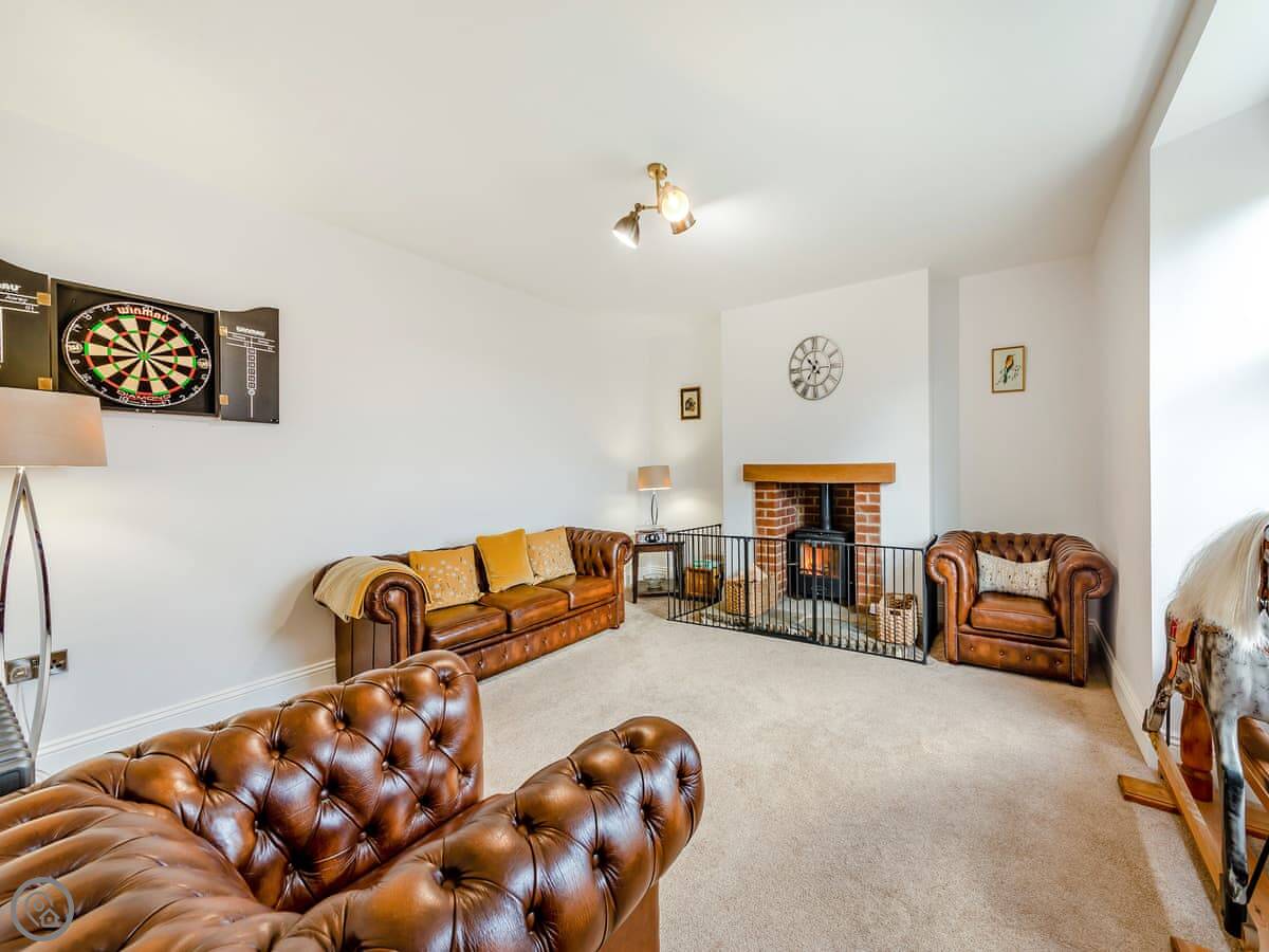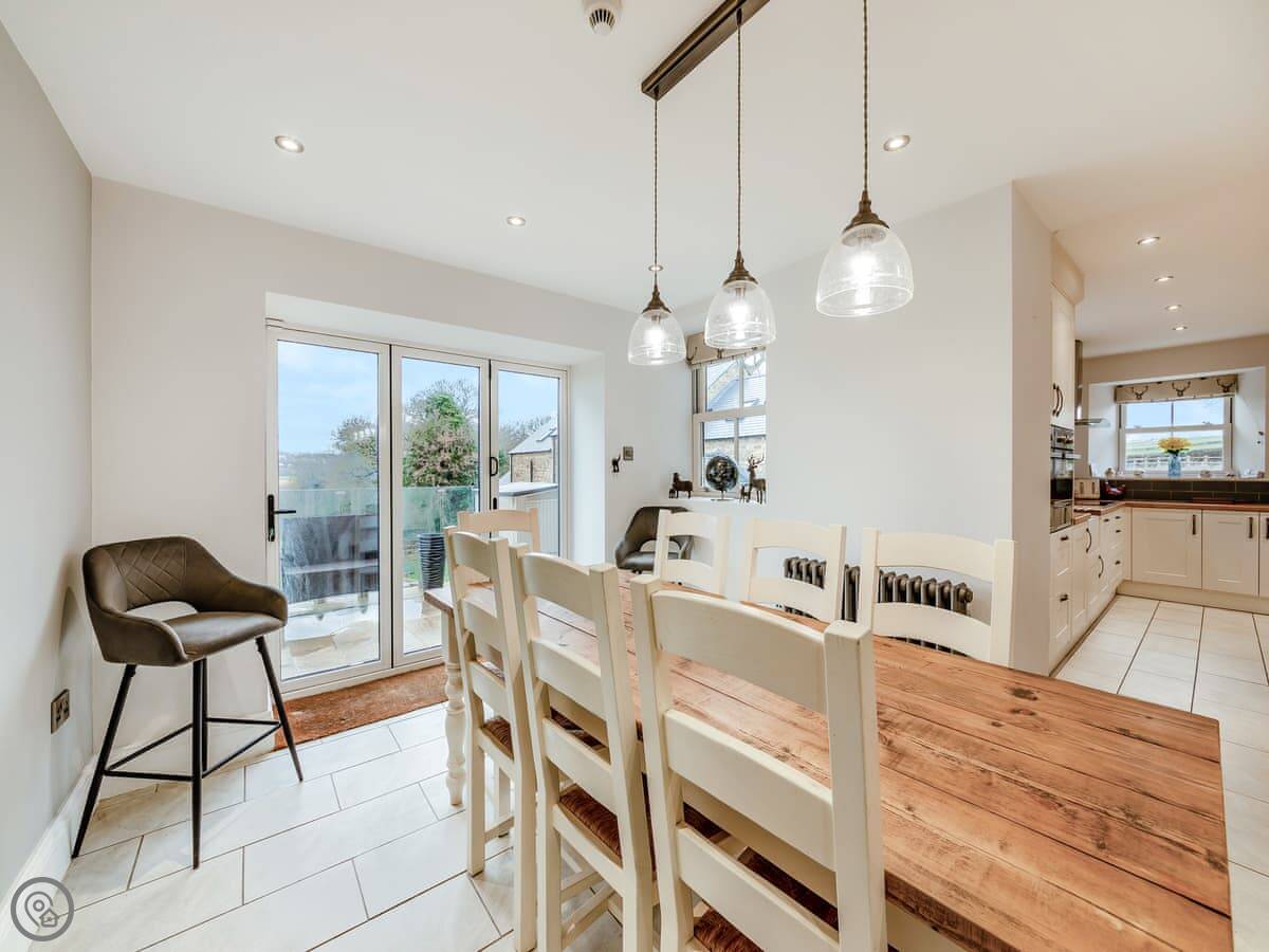 It's got a 5 Star rating, which reflects the standard. It's been renovated to a high spec. There are two living rooms, both with wood burners. The kitchen is open-plan with a big island and a dining table for eight.