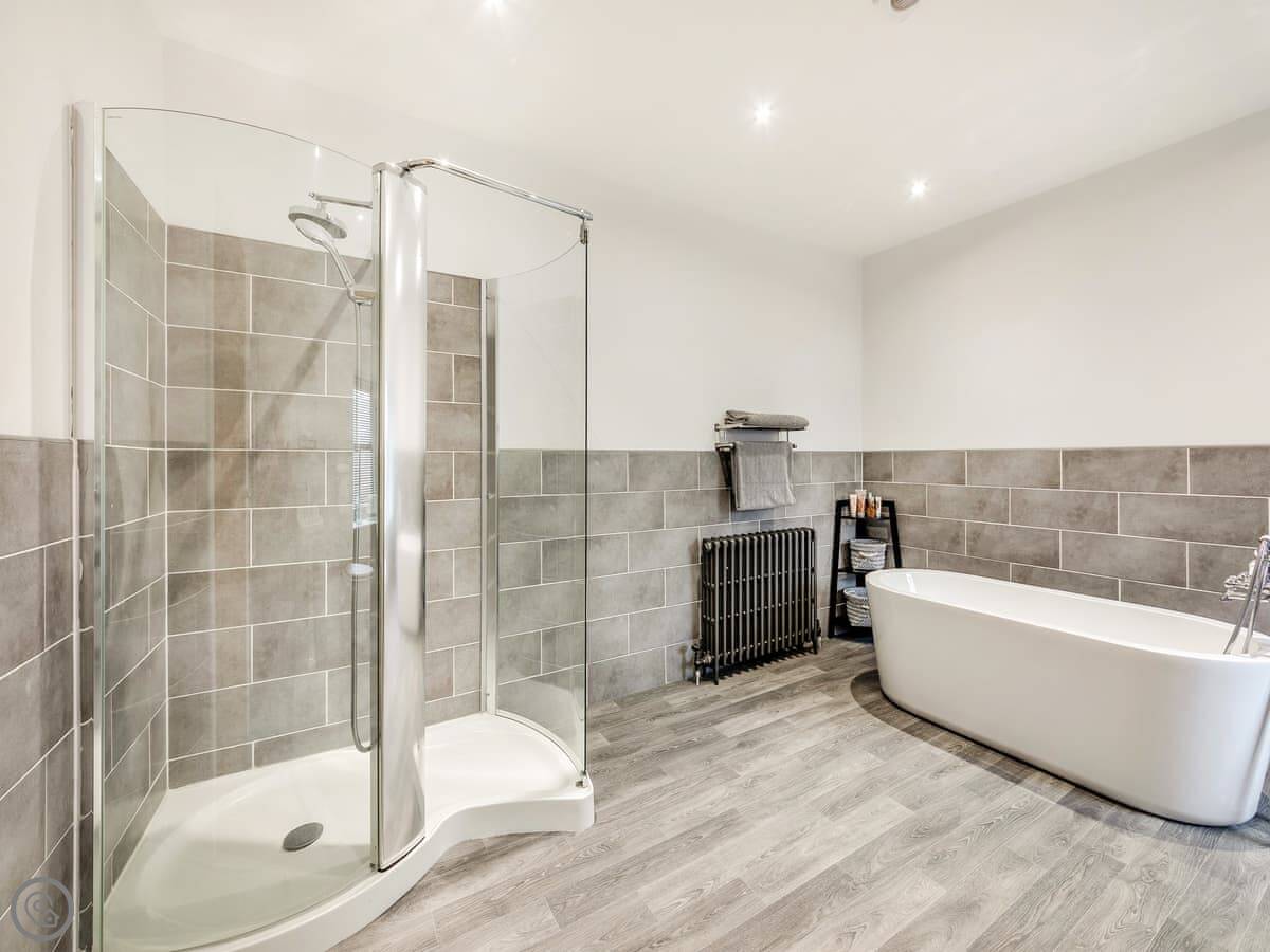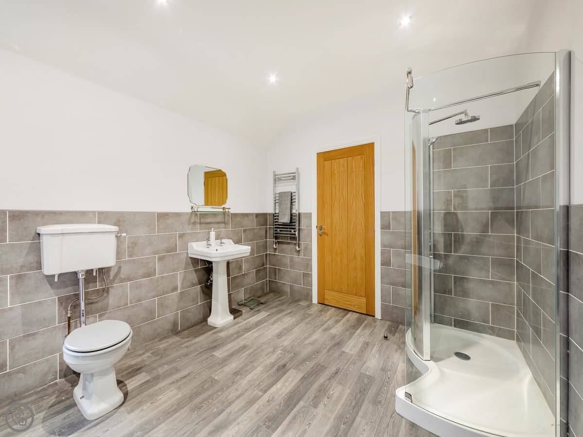 Binchester Crag Farm is near the village of Newfield, in County Durham. It's a stone farmhouse, detached and fairly large. It sleeps eight, in four bedrooms. There's one main bathroom and one en-suite shower room upstairs, plus a toilet downstairs.