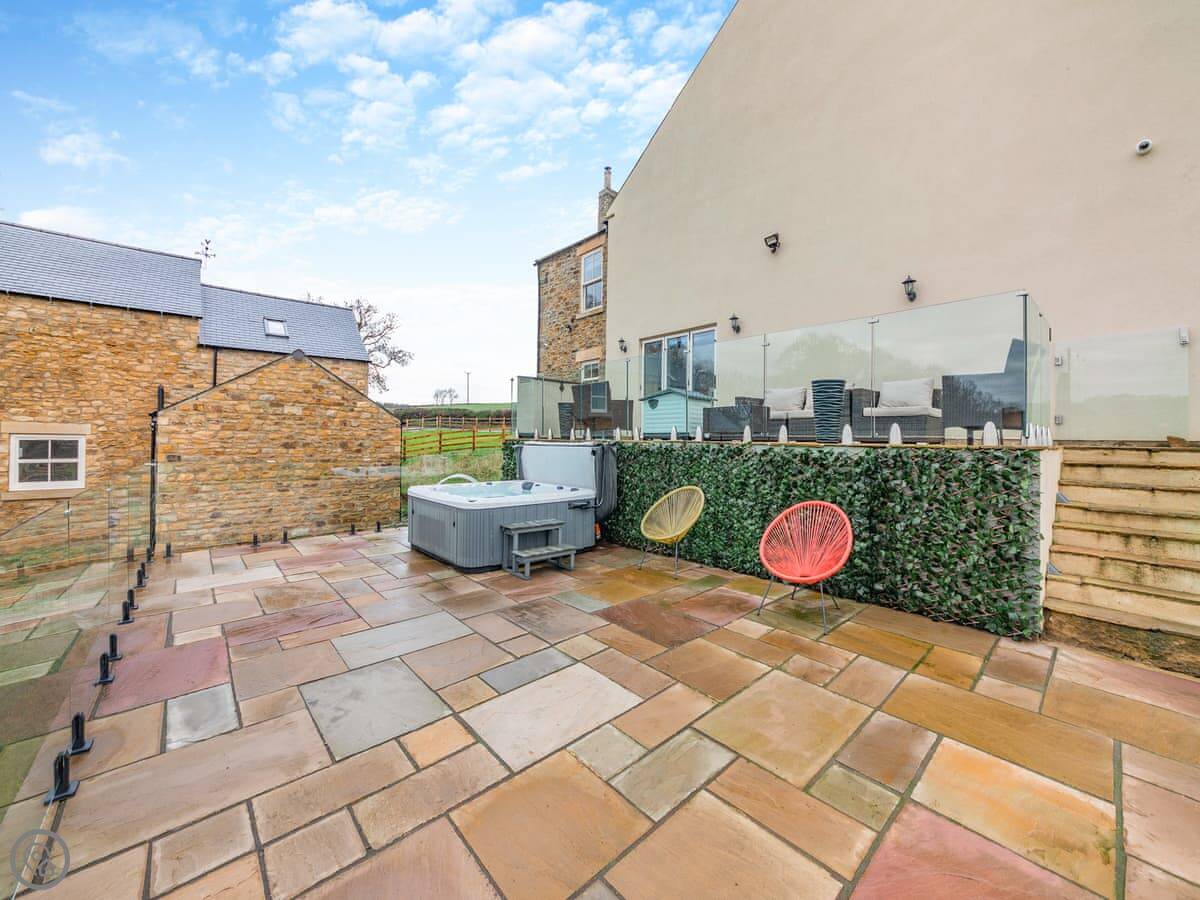 The garden is enclosed and quite big. At the back there's a raised patio on two levels, with a hot tub. The garden goes down to a lawn, and then you have a bit of river frontage on the Wear. It's not deep there, more of a shallow stretch.