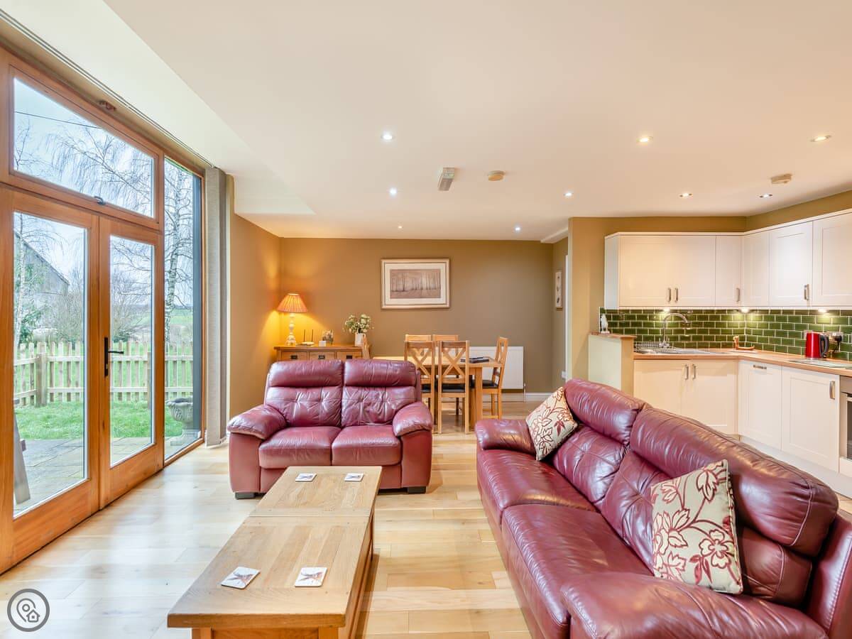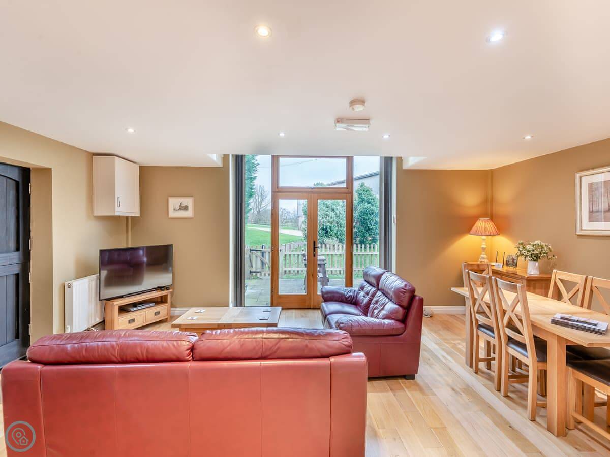 You’ll see the farm animals from the windows. We've got cows, sheep, chickens, and a few donkeys. The chickens provide eggs you can have during your stay. The patio is private and looks out over a field.