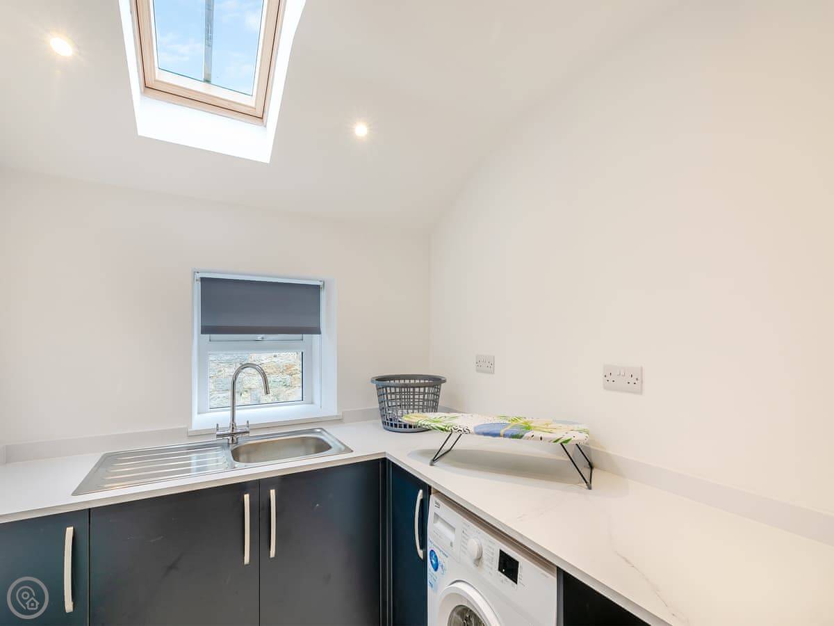 Downstairs there's the living room with a wood burner. We leave you some logs to get you started. The kitchen has what you need, including a dishwasher and washing machine. The patio at the front has a table and chairs. The lawn is enclosed.