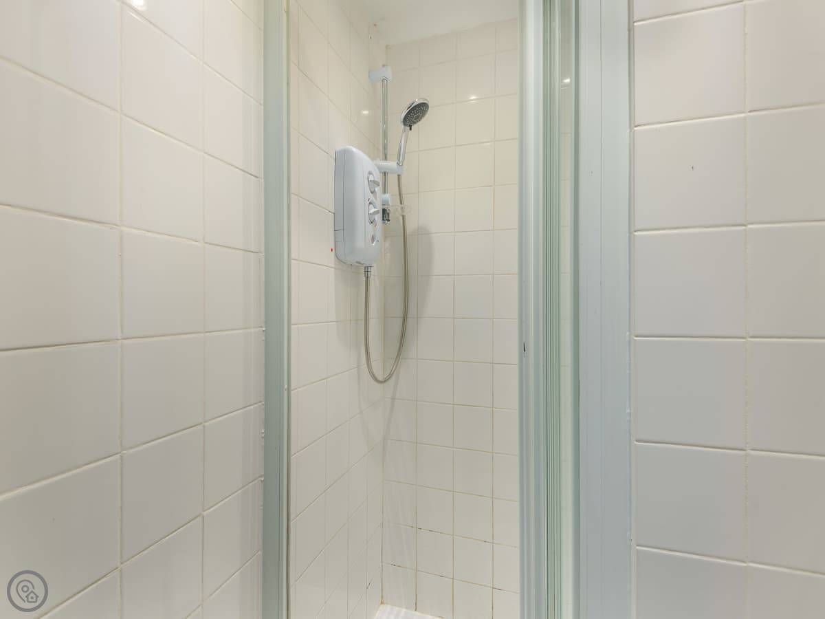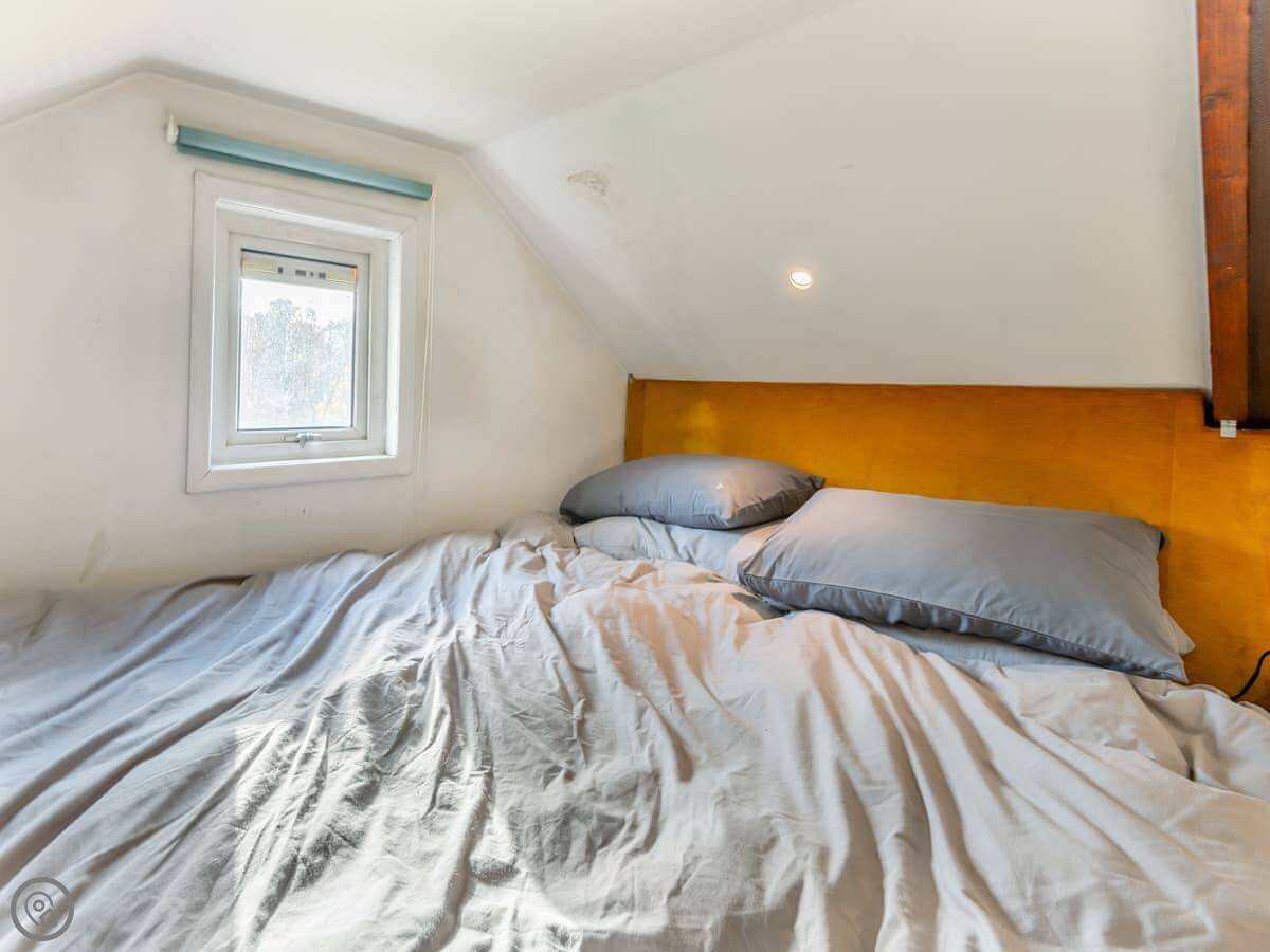 It sleeps four. There are two bedrooms, but one of them is a mezzanine platform over the living area. You can have it as a double or two singles. There's one bathroom, but the shower is separate to the toilet. That's just how it's laid out.