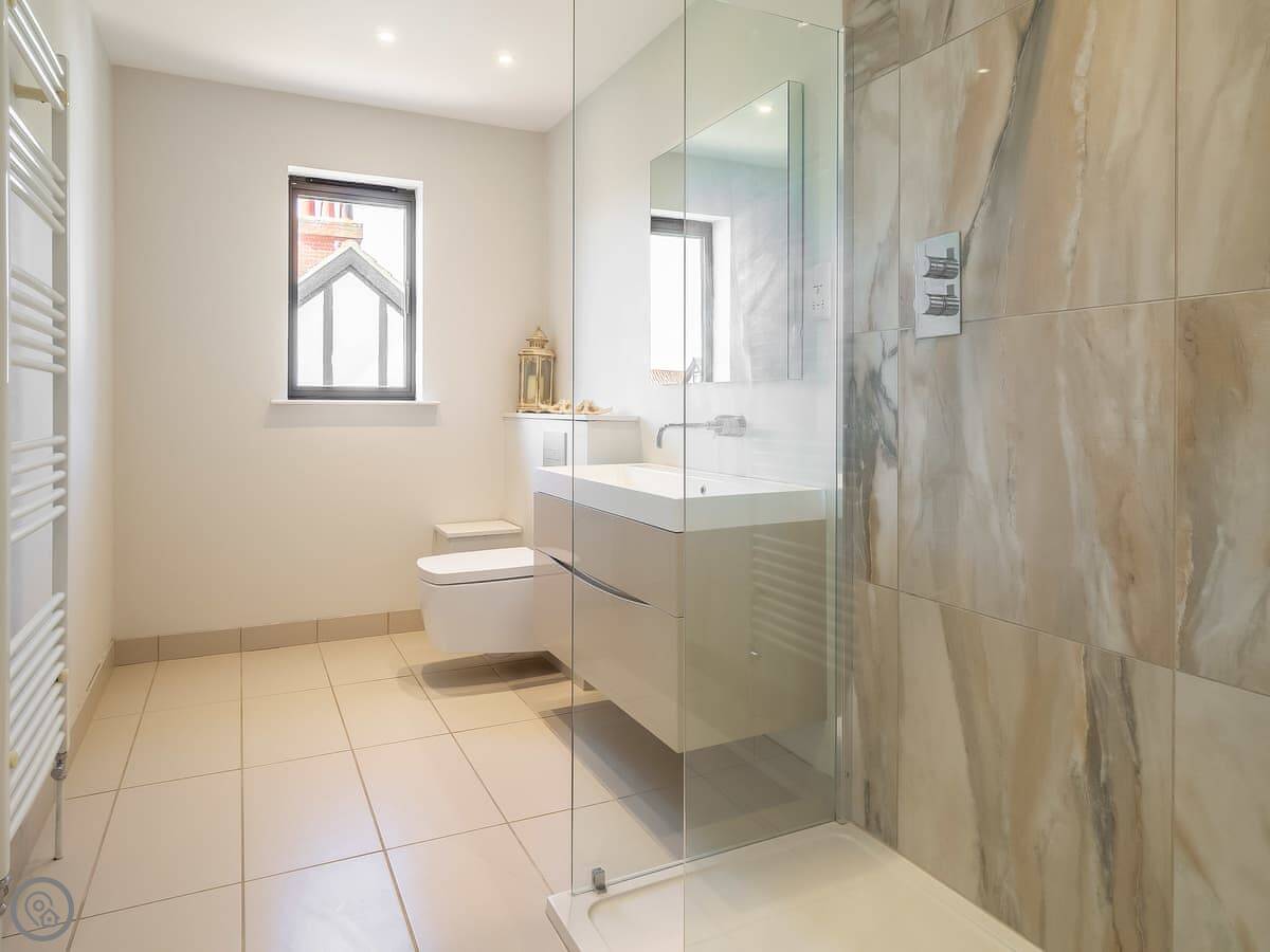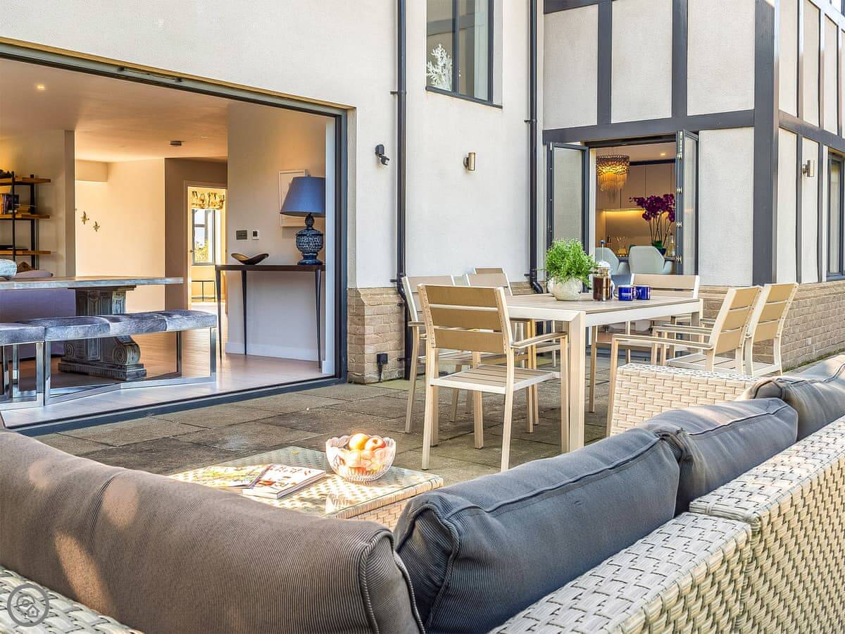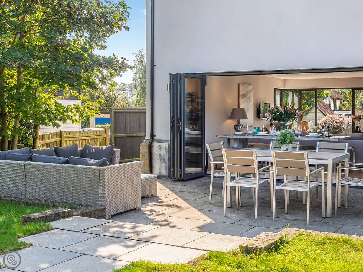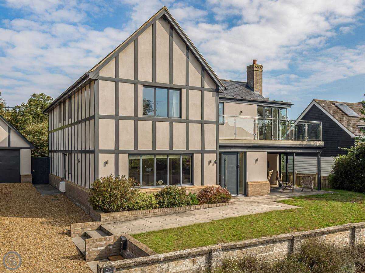 This is Mallards in Thorpeness. It's a detached house, built about nine years ago in a modern take on the local style. Sleeps eight, four bedrooms, each with its own bathroom. That's handy with a group.