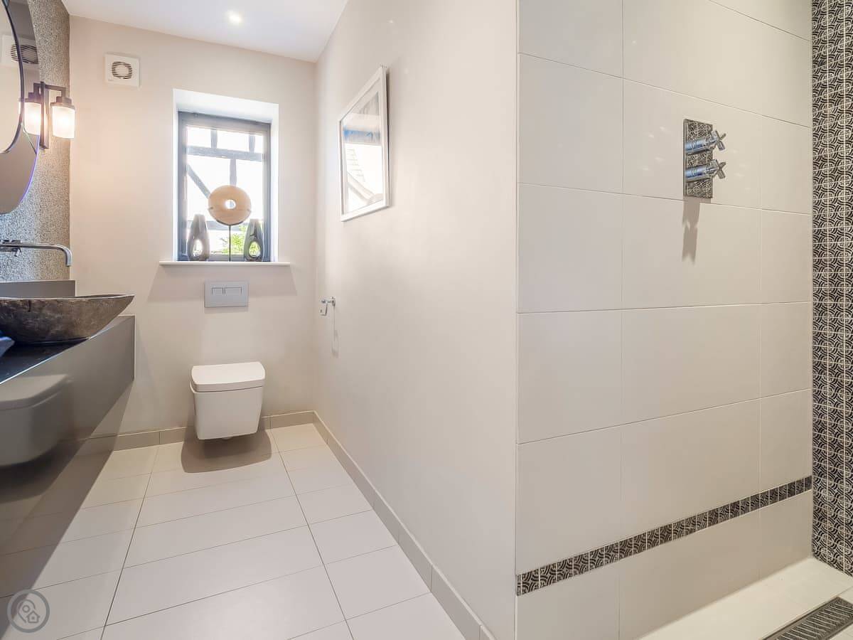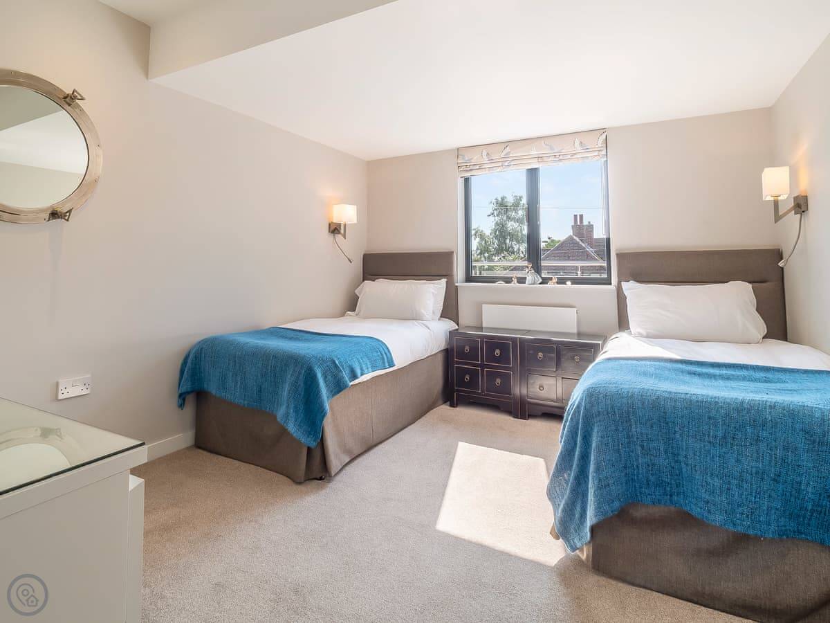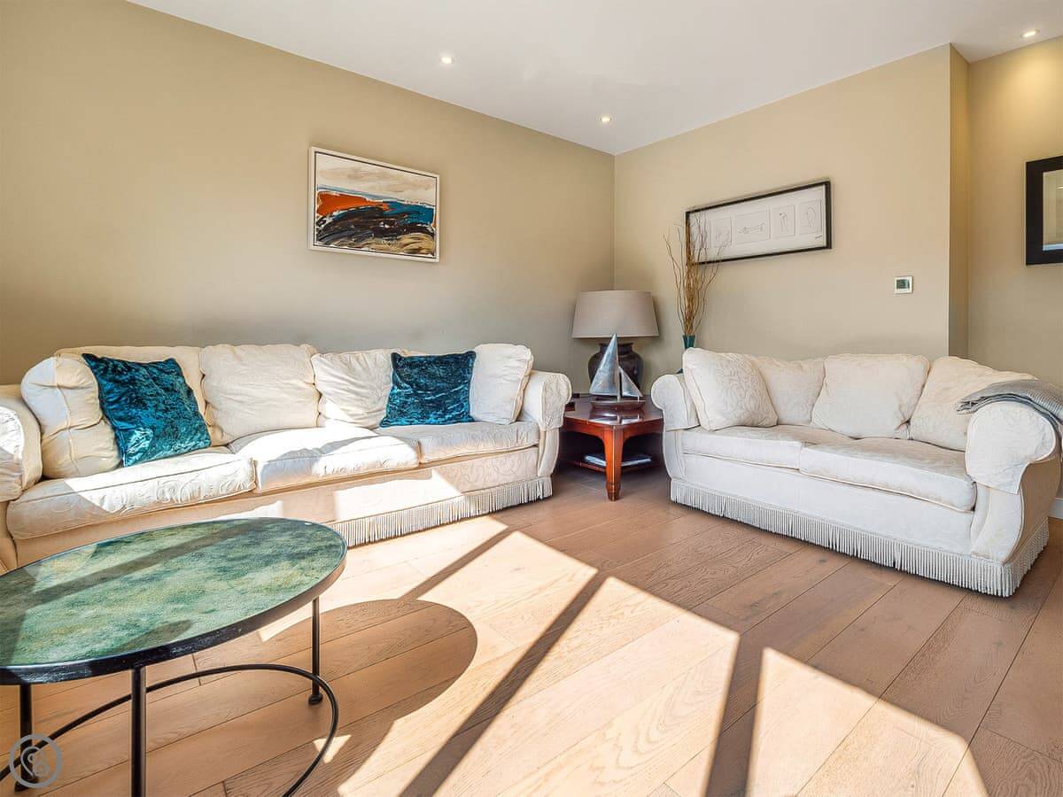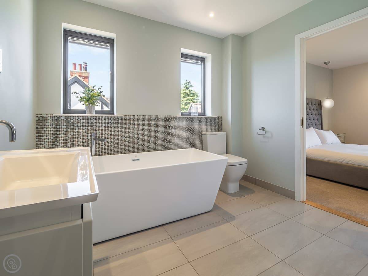 This is Mallards in Thorpeness. It's a detached house, built about nine years ago in a modern take on the local style. Sleeps eight, four bedrooms, each with its own bathroom. That's handy with a group.