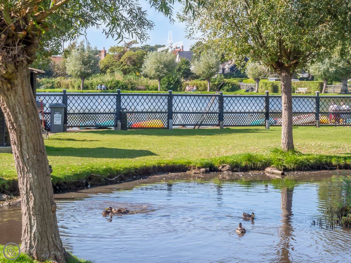 Thorpeness itself is an unusual place. It was designed as a holiday village over a century ago. The house overlooks the Meare Boating Lake, and the beach is a few hundred yards away. There's a pub about a five minute walk from the house.