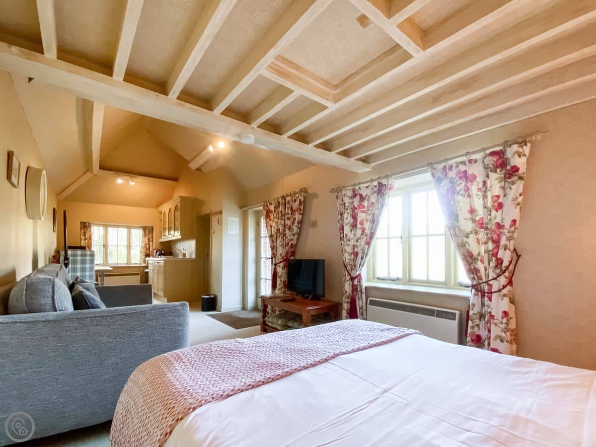 It's a ground floor cottage, all on one level, which is handy. It sleeps four, with two bedrooms and one bathroom with a shower. It's got a 3 Star rating. It's clean and comfortable, not luxurious. You can bring two dogs. There isn't a fully enclosed garden though, so you'll need to keep them on a lead outside.