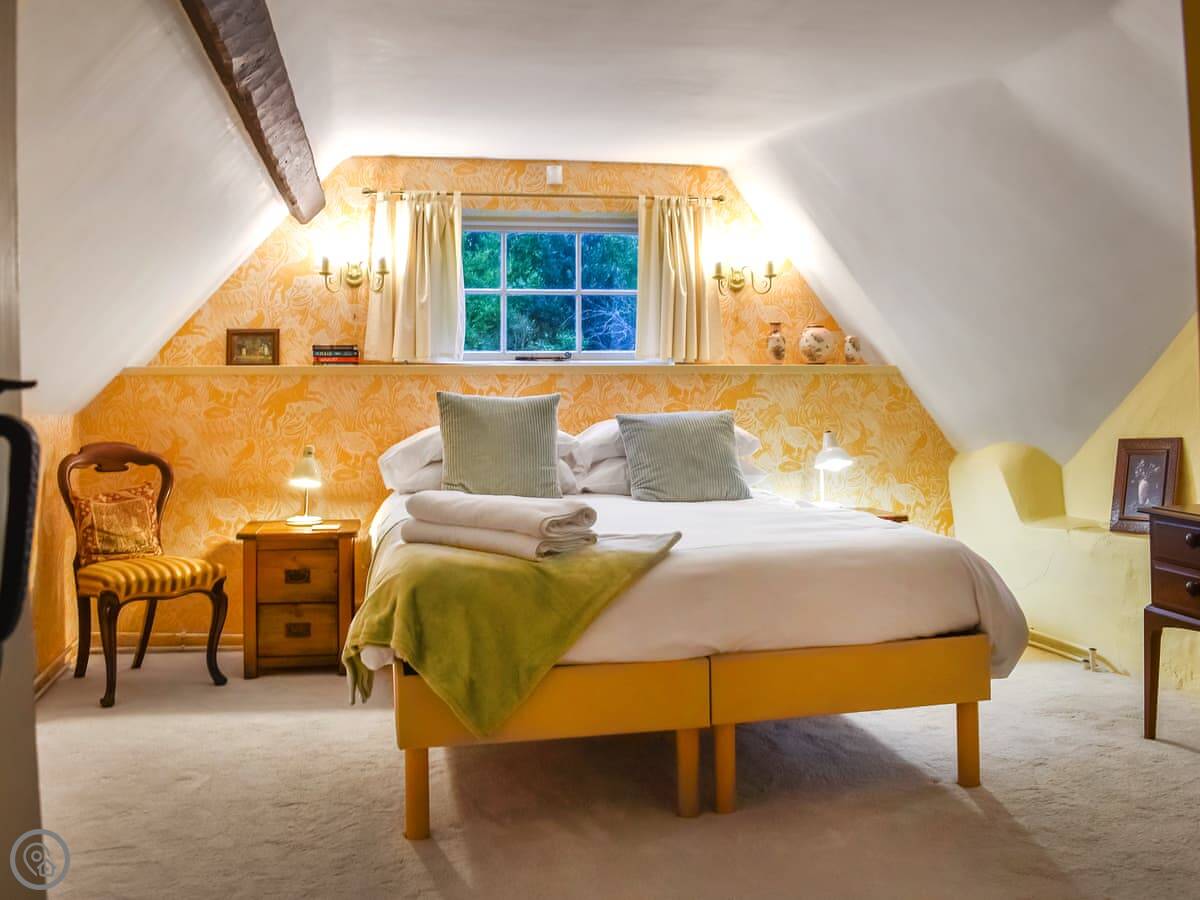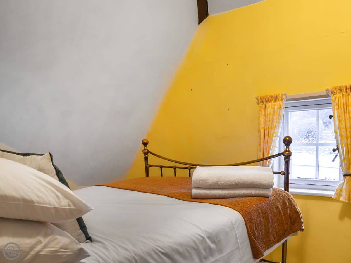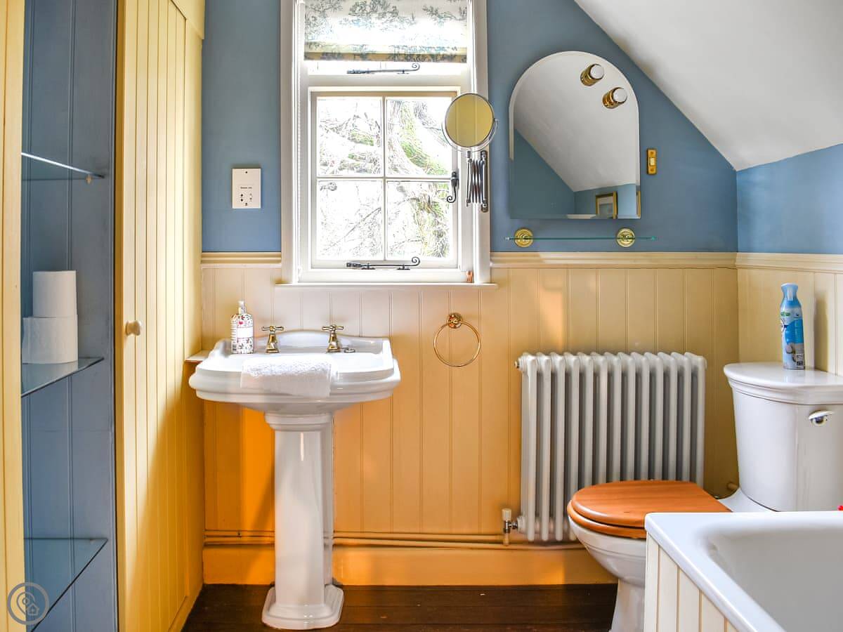 It sleeps five. There are two bedrooms and two bathrooms, which is handy. One's got a shower cubicle, the other has a bath. The stairs are steep and twist a bit. It's an old cottage, that's just how they are.
