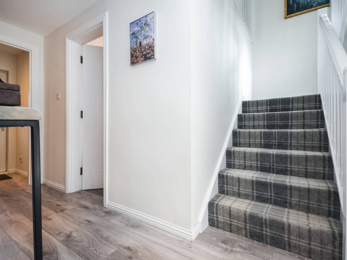 In terms of location, you're right on the edge of town. It's about a ten minute walk to the main street with the shops and cafes. There's a local pub, the Loch Lomond & The Trossachs National Park office and visitor centre is just down the road, which is handy for maps and advice. From the house you can walk straight onto the Callander Crags path, or down to the River Teith.